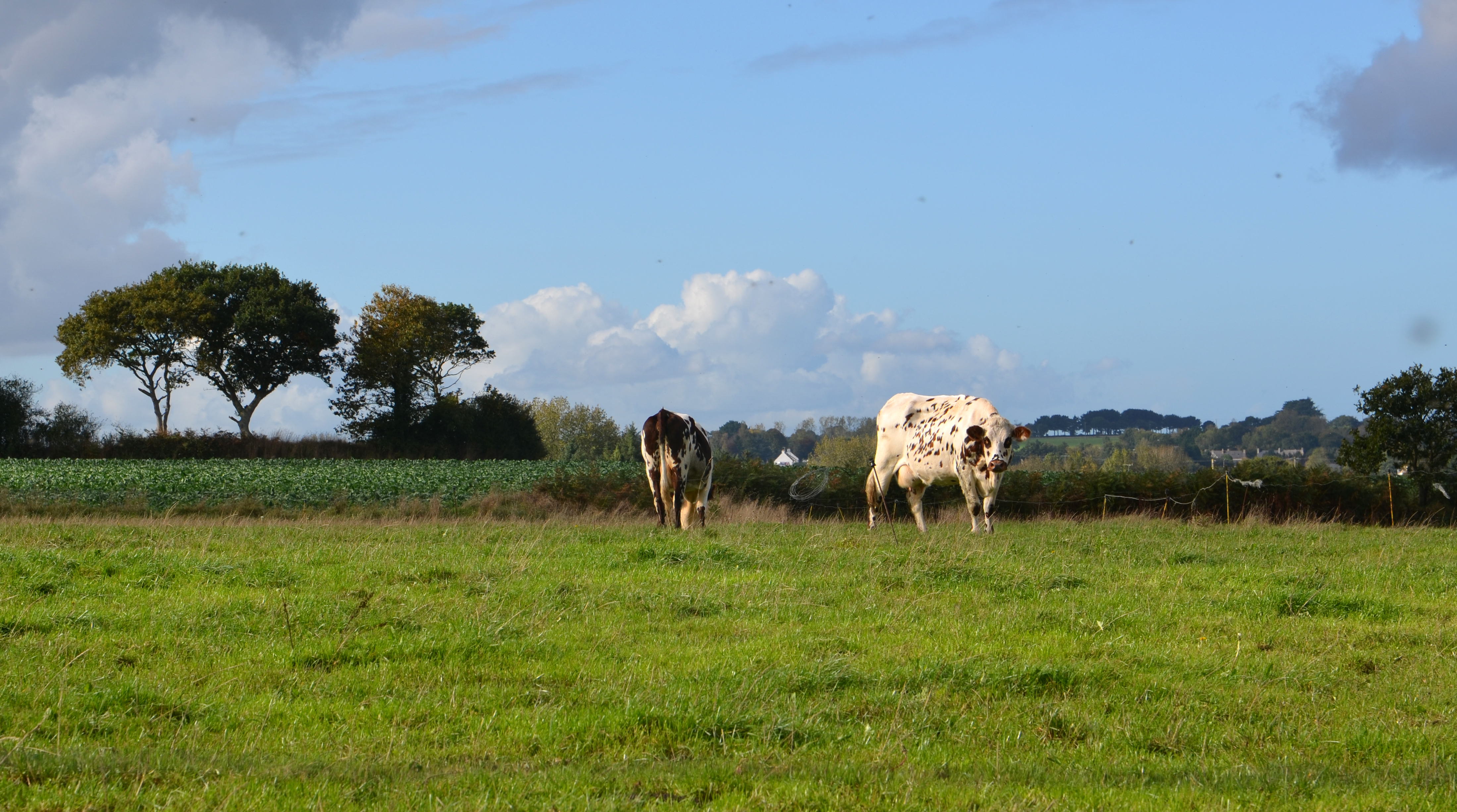 Langoat, Kerhuel : le paysage vers l'ouest, vaches en pâtureImmatriculation