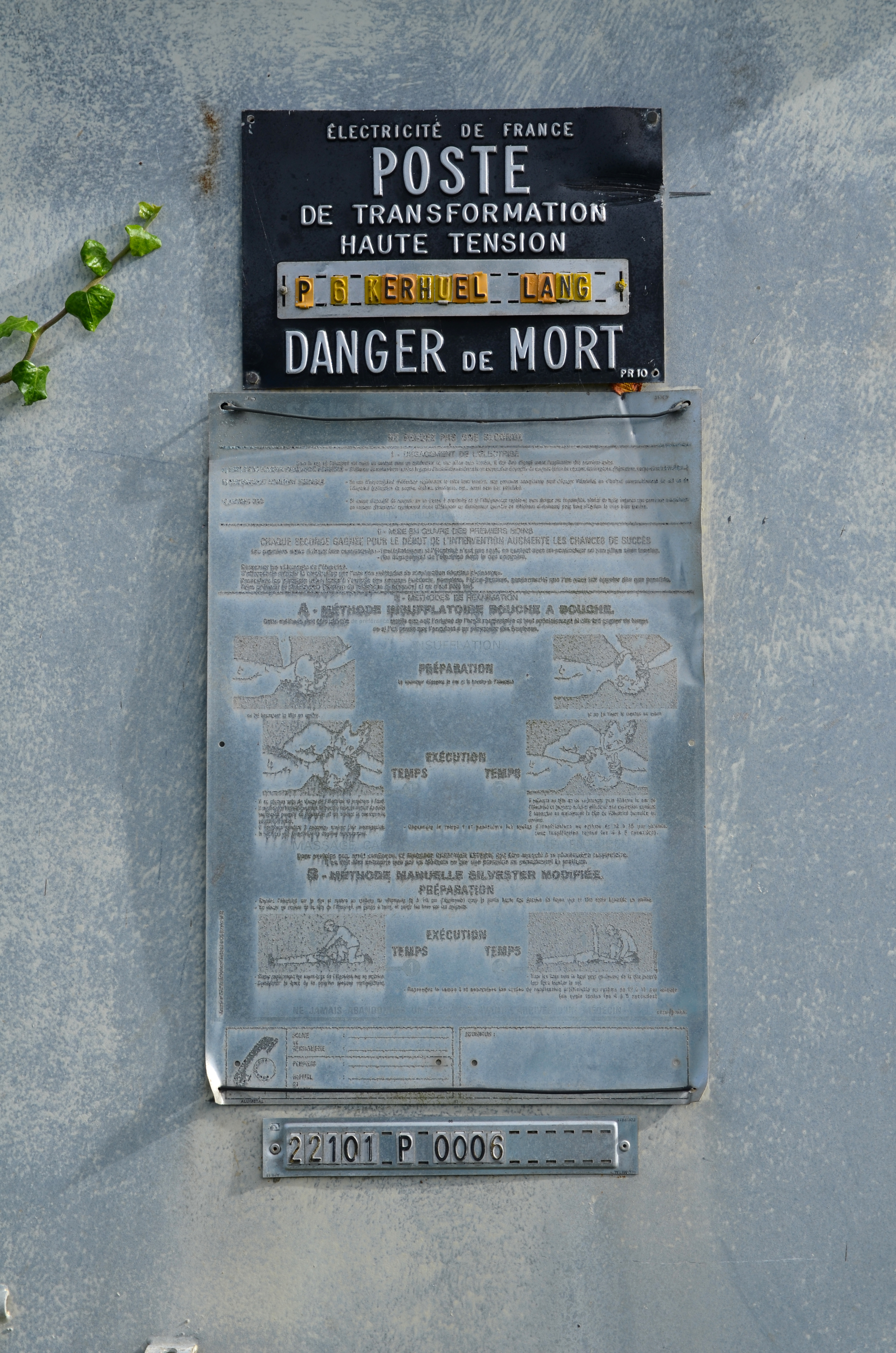 Langoat, Kerhuel : transformateur électrique, vue de détailImmatriculation