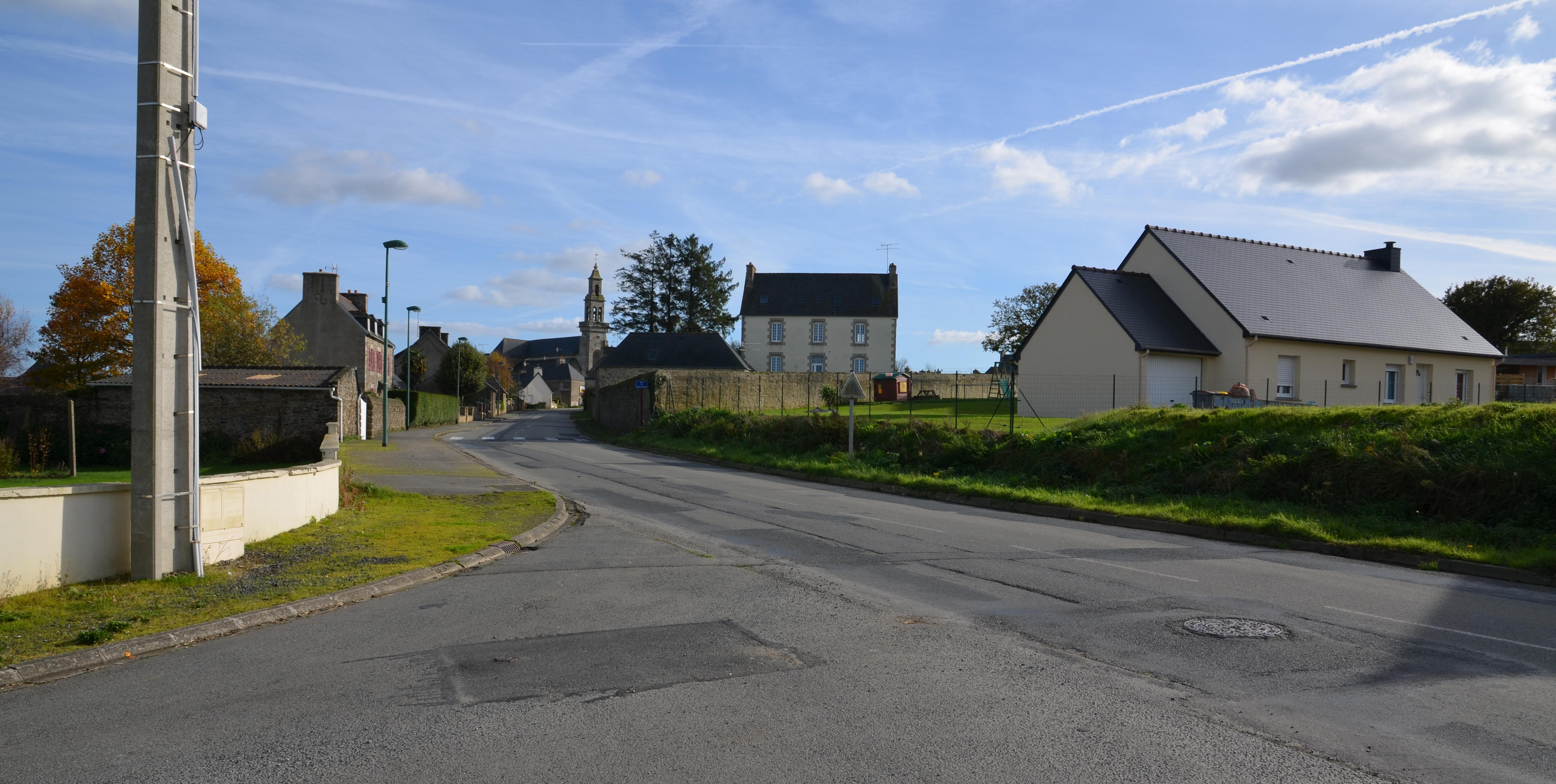 Langoat : vue générale vers l'est et le bourg depuis la rue Sainte-PompéeImmatriculation