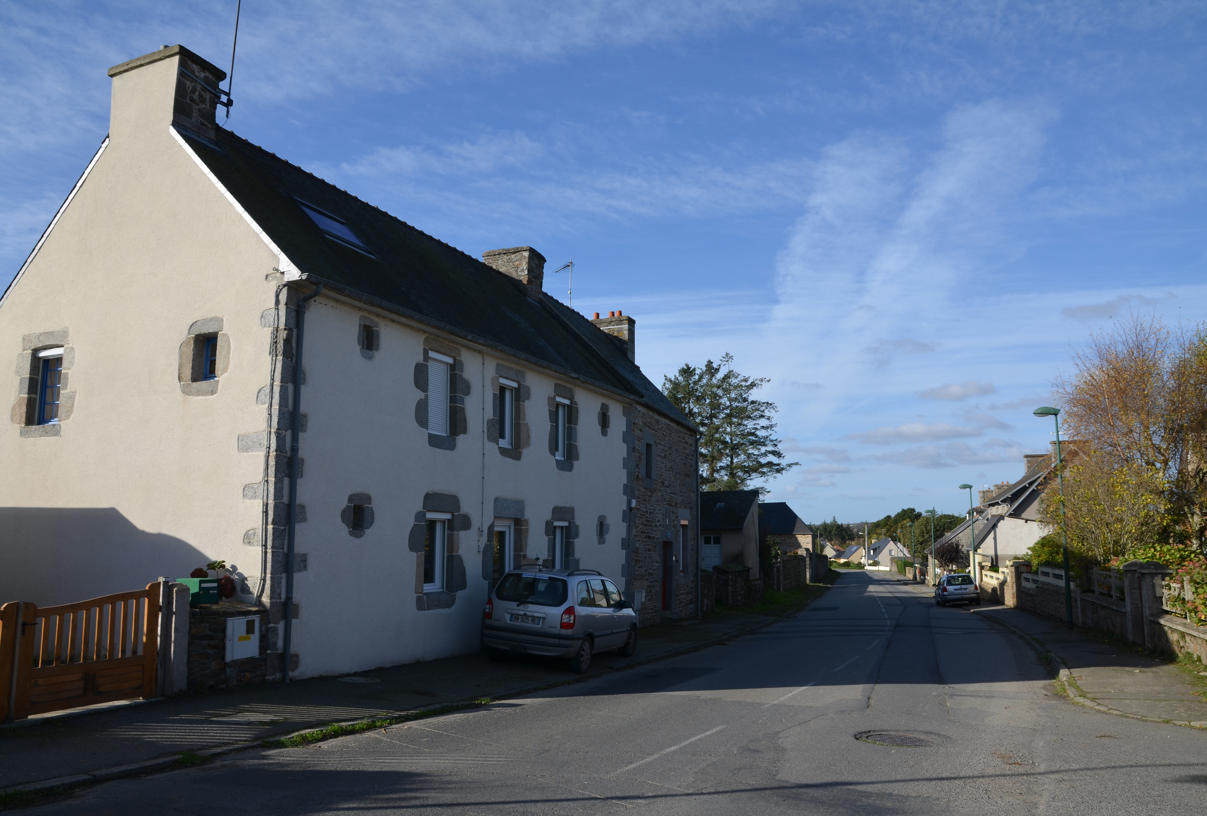Langoat, le bourg (nord-ouest), rue Sainte-Pompée : maison datée par millésime de 1834 (linteau de fenêtre du pignon)Immatriculation