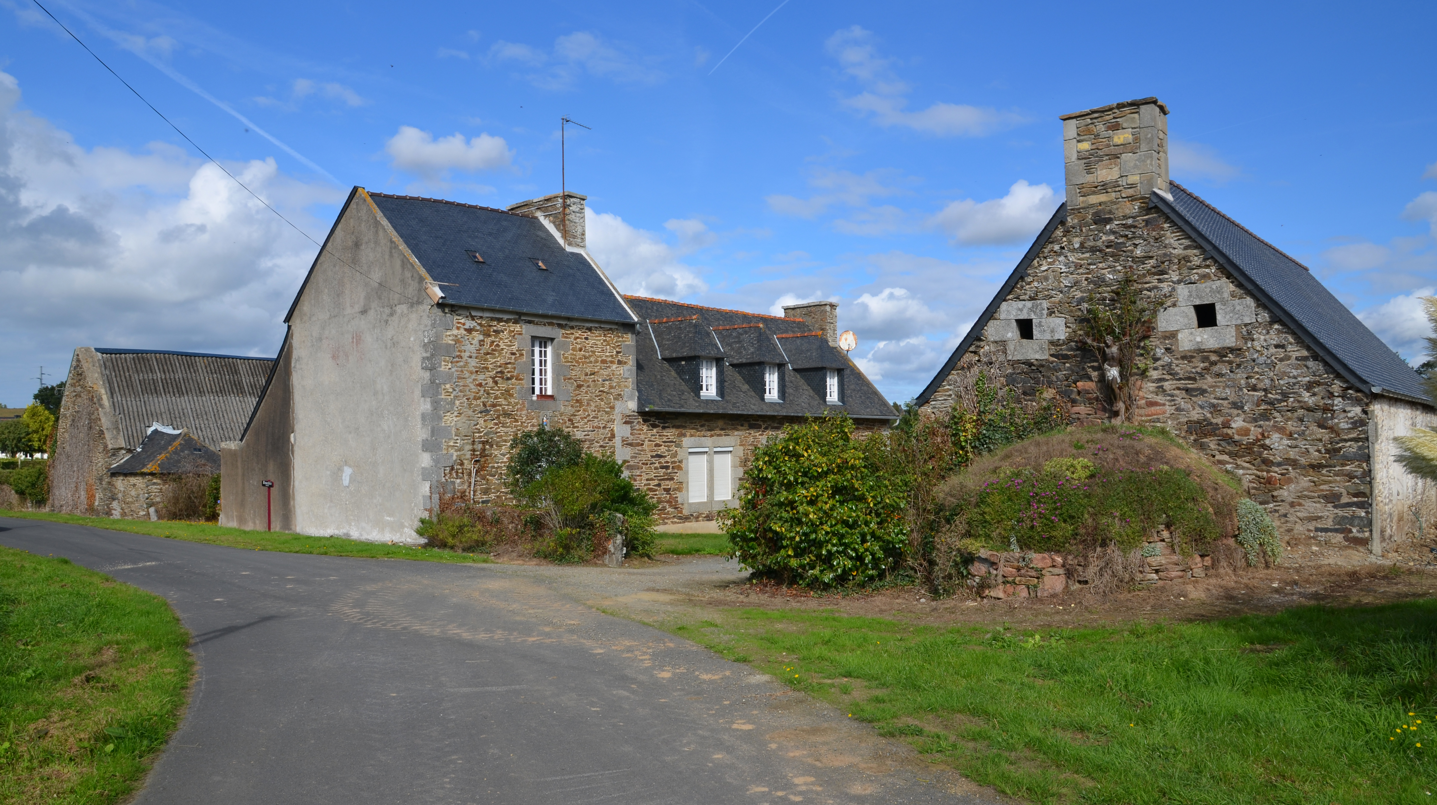 Langoat, Bouchic (Bouchig) : ferme et croix de chemin remployée au-dessus du four à painImmatriculation