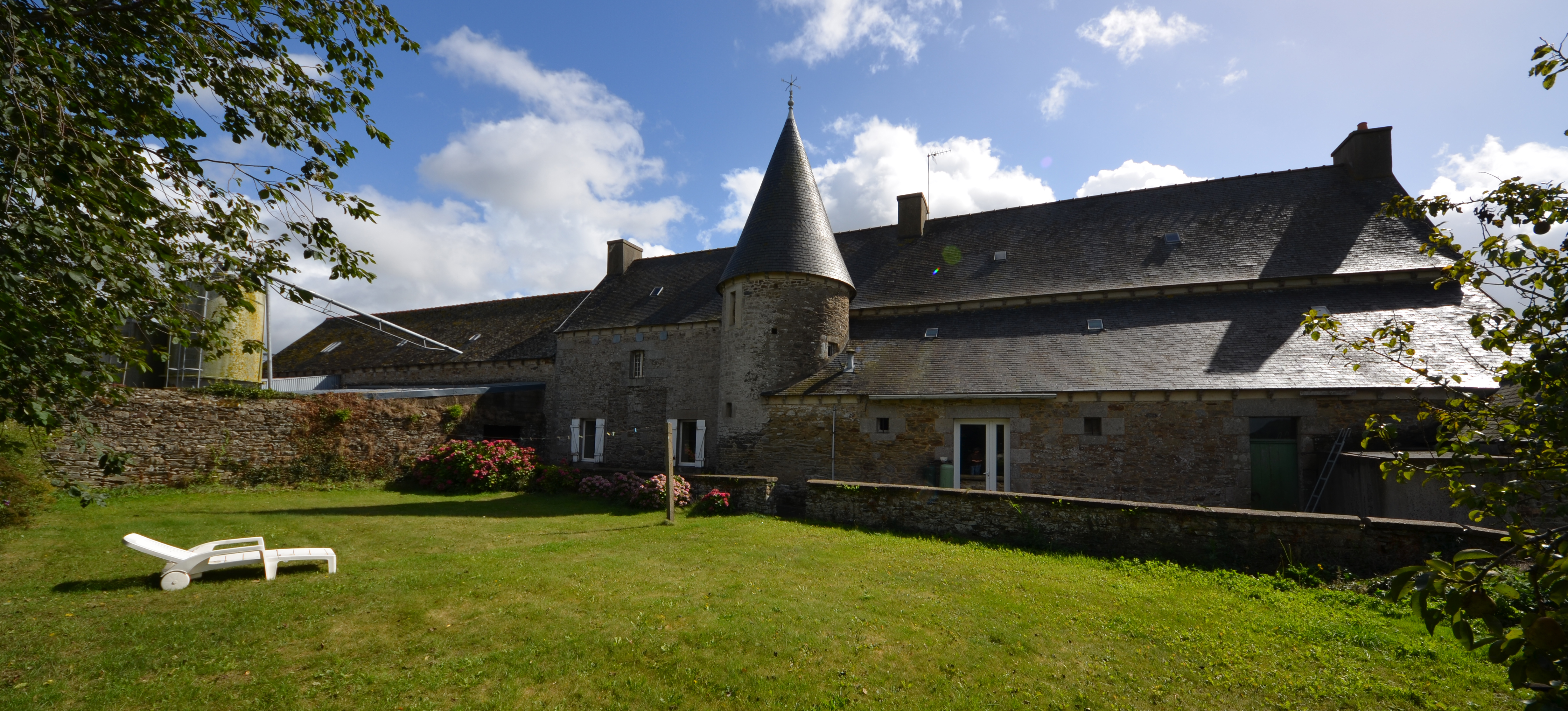 Langoat, Le Cosquer : manoir puis ferme, logis, élévation postérieure orientée vers le nord-nord-ouest. La tour renferme un escalier en vis en graniteImmatriculation