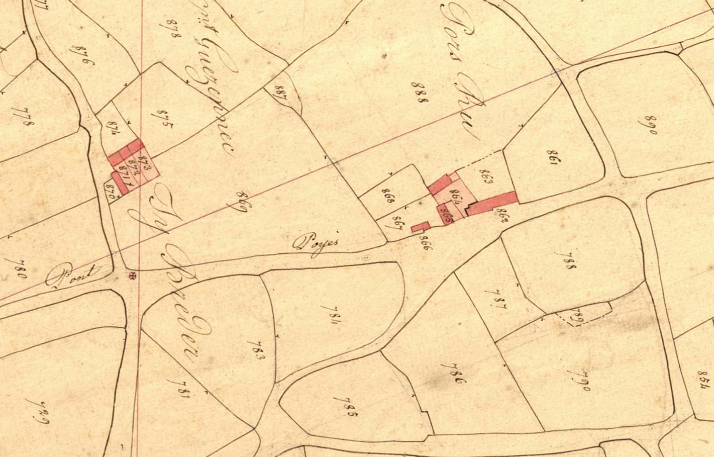 Extrait du cadastre ancien de la commune de Langoat, 1836 : Ty Breder (croix de chemin), Pors RuImmatriculation