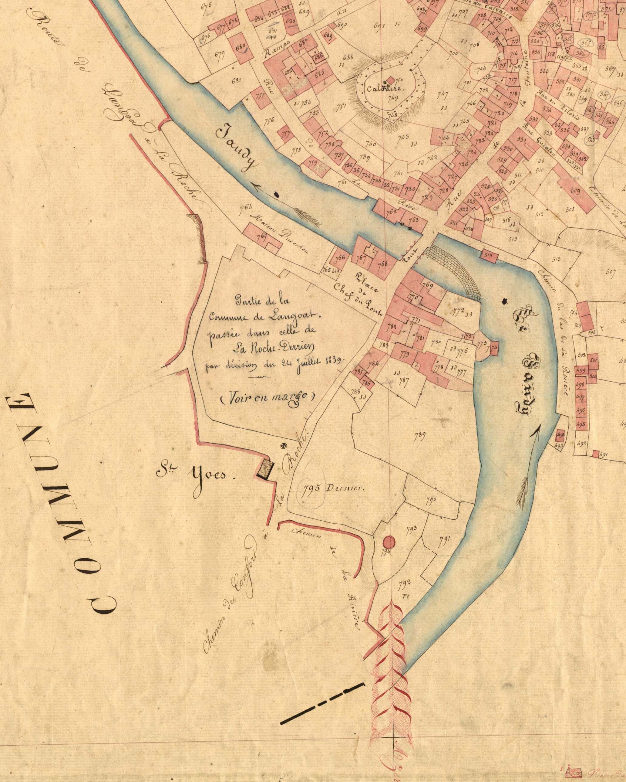 Extrait du cadastre ancien de la commune de La Roche Derrien, 1836 : Chef du Pont et Saint YvesImmatriculation