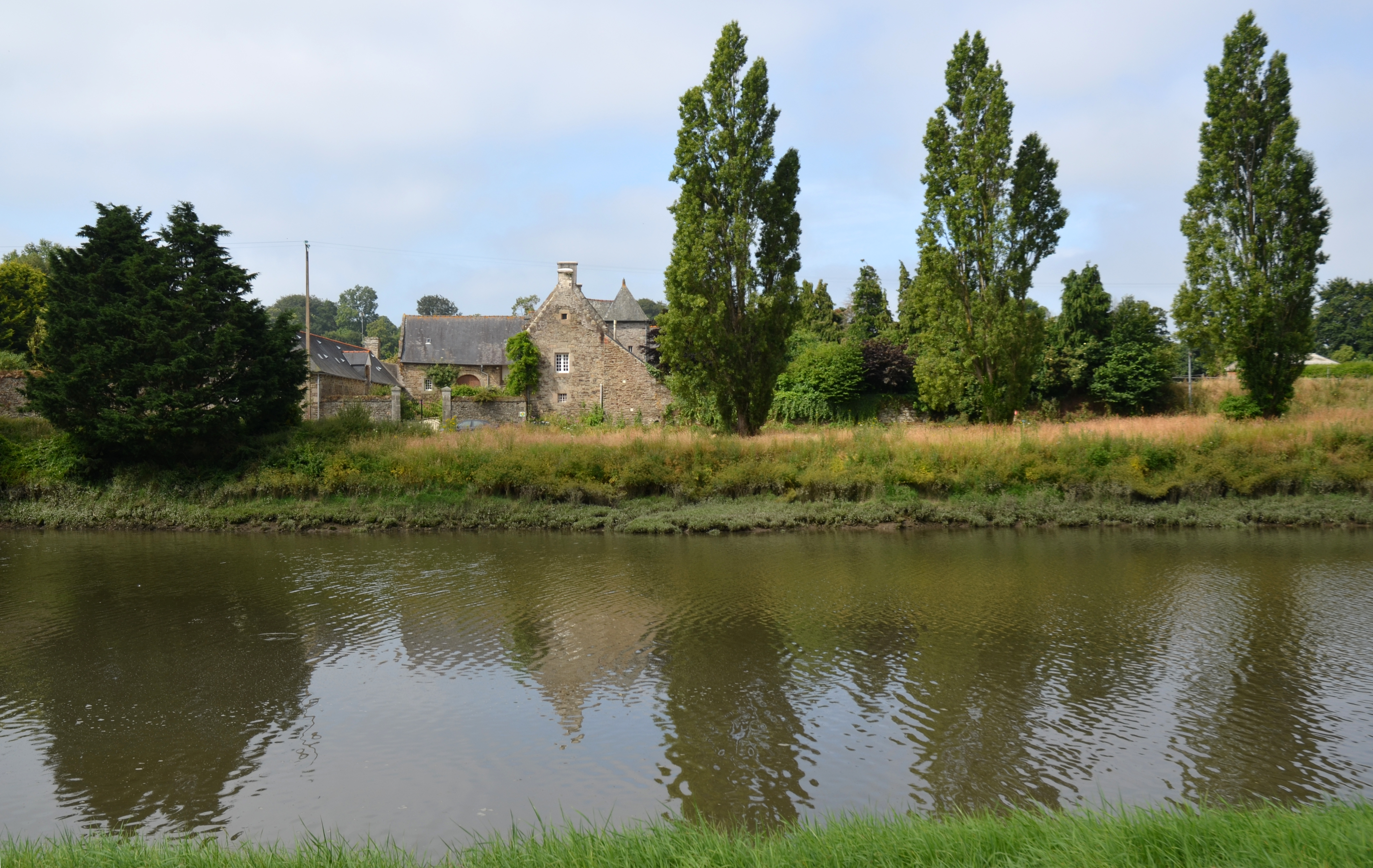 Langoat, écart de Saint Yves - Chef du Pont : le manoir de Kerverder depuis La Roche Derrien, vue de situation depuis le nord-est. Au premier plan : le JaudyImmatriculation