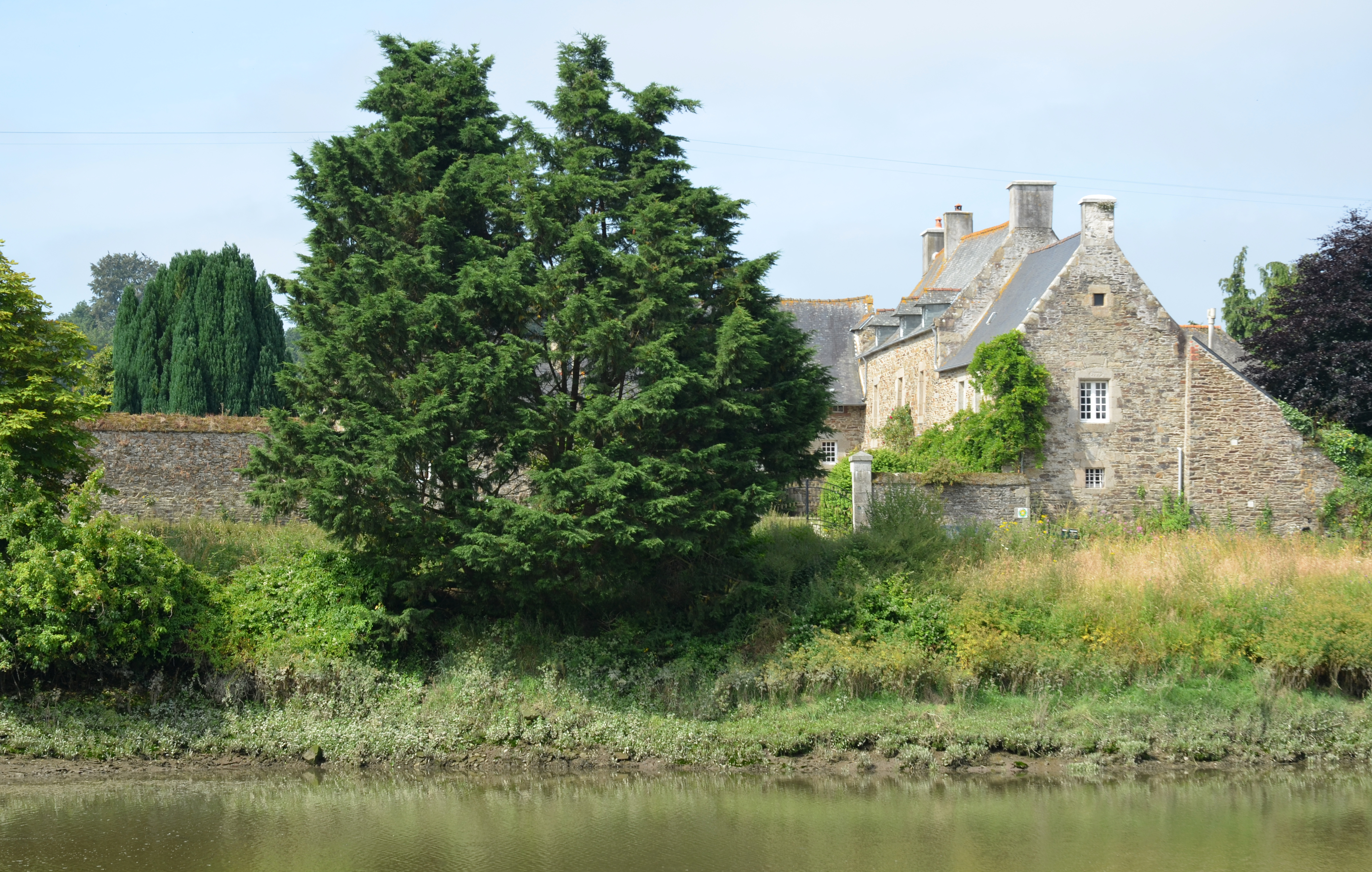 Langoat, écart de Saint Yves - Chef du Pont : le manoir de Kerverder depuis La Roche Derrien, vue de situation depuis le nord-est. Au premier plan : le JaudyImmatriculation