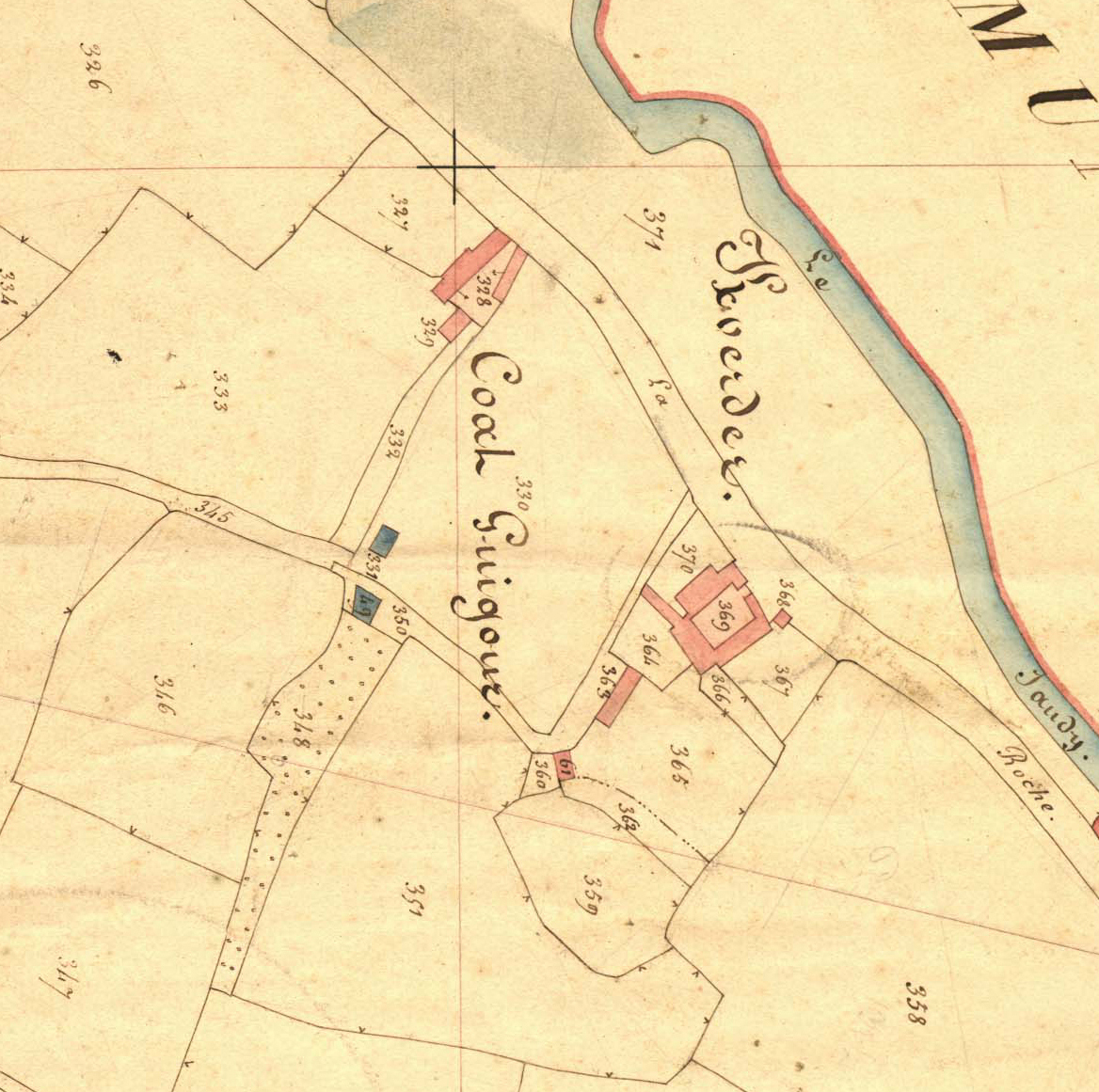 Extrait du cadastre ancien de la commune de Langoat, 1836 : Kerverder et Coat GuigourImmatriculation