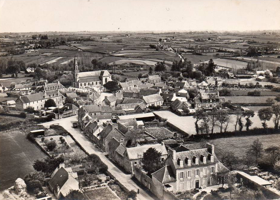 Langoat : vue aérienne oblique du bourg vers le nord-nord-est, carte postale (collection particulière)Immatriculation