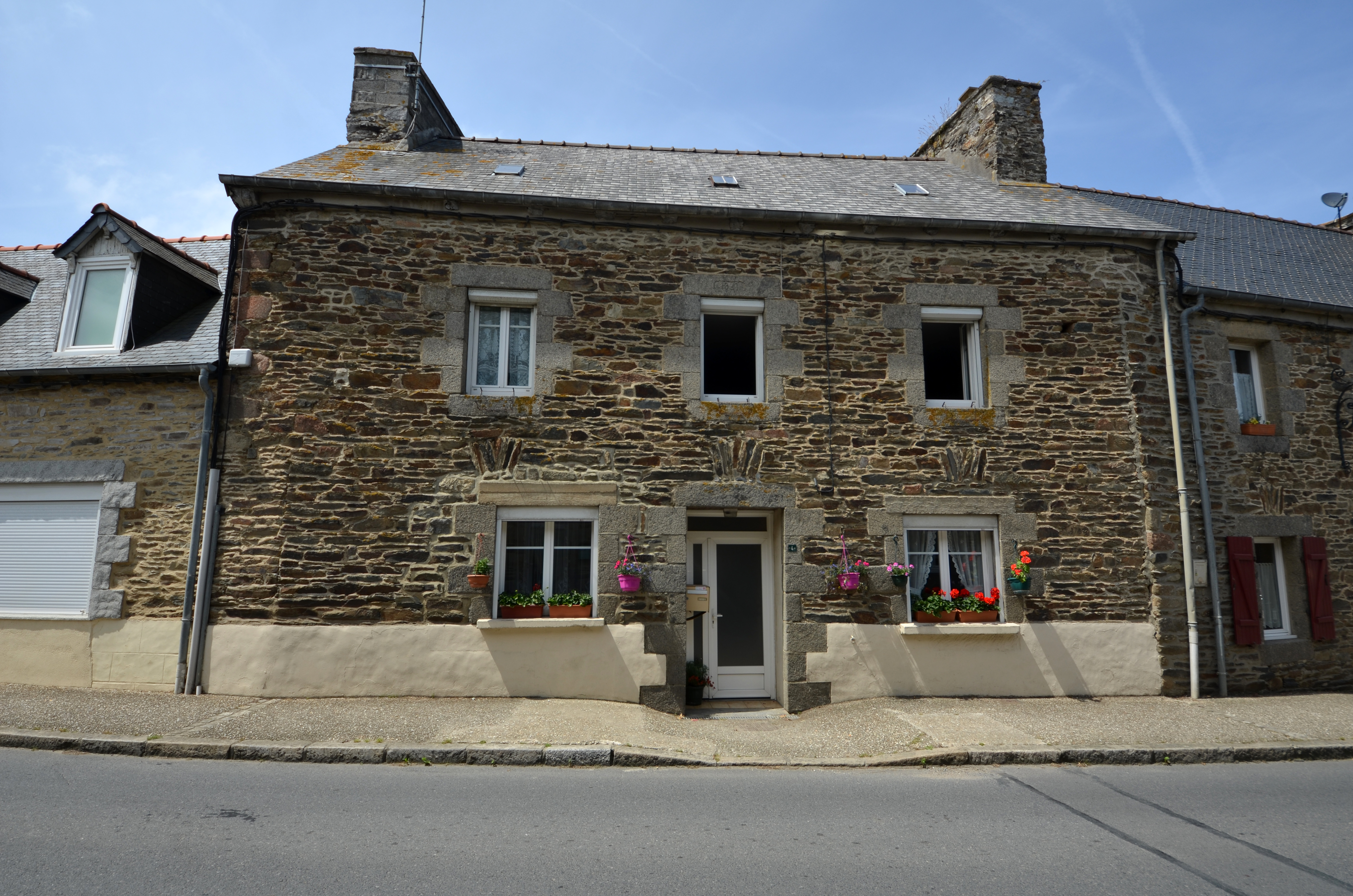 Langoat, le bourg, rue des Ecoles : maison datée par millésime de 1841 (sur le linteau de la fenêtre centrale de l'étage)Immatriculation