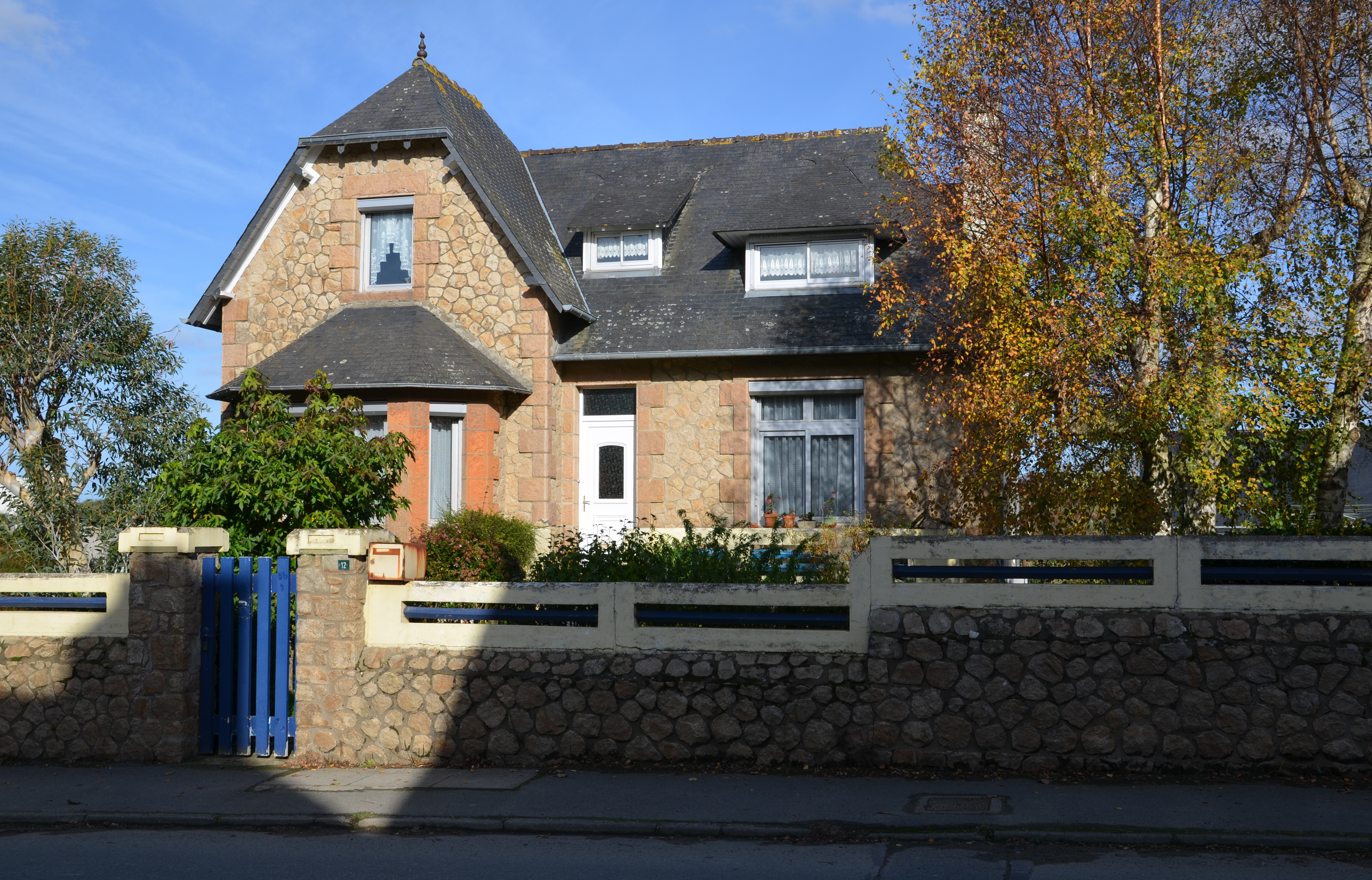 Langoat, le bourg (nord-ouest), rue Sainte-Pompée : maison d'inspiration balnéaire construite en 1938 (source orale)Immatriculation