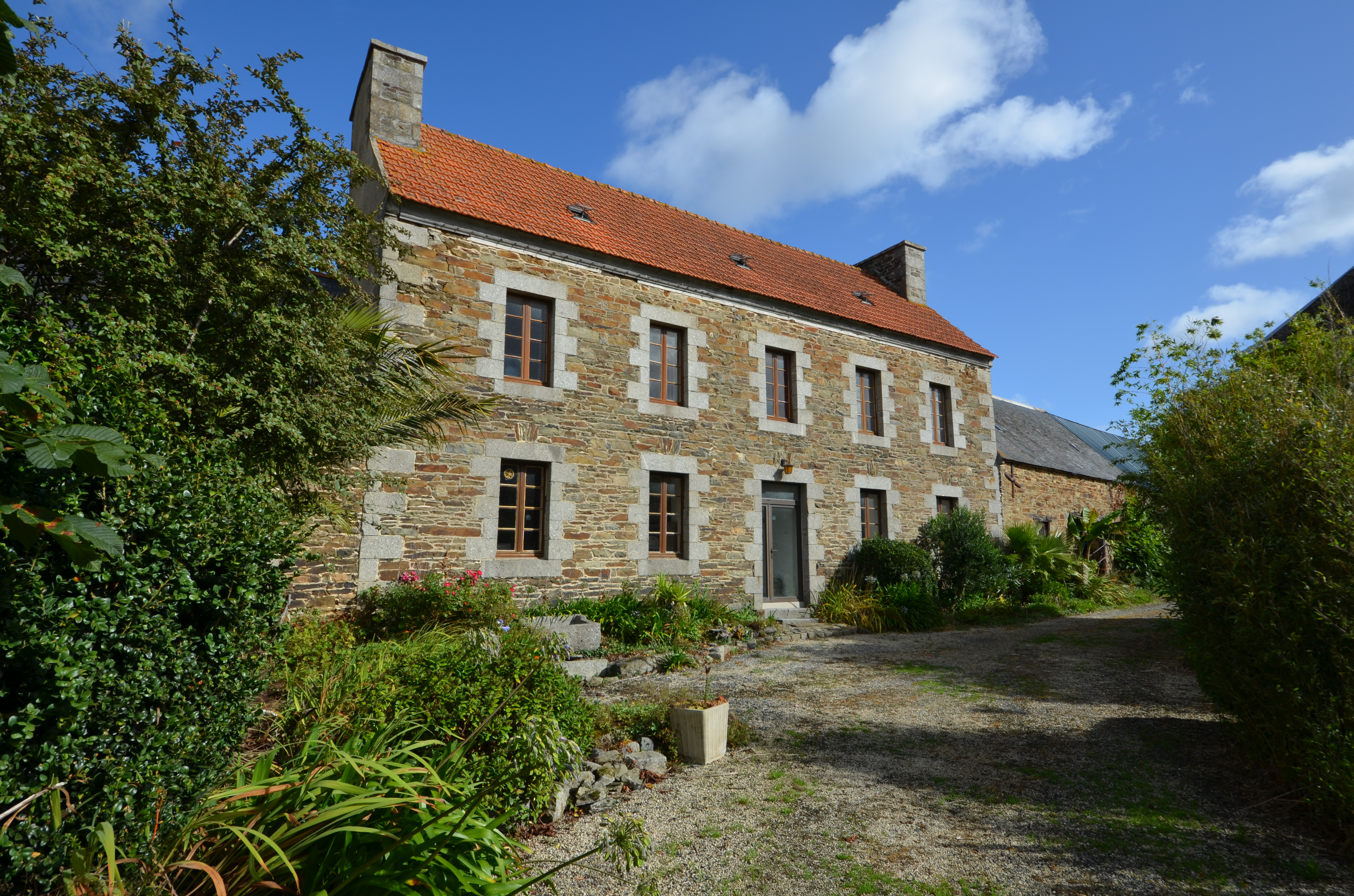 Langoat, le bourg (sud), Convenant Bazile : ferme aujourd'hui maison et "Gîtes de France". Ce logis, de type ternaire à 5 travées, est daté par millésime de 1851Immatriculation
