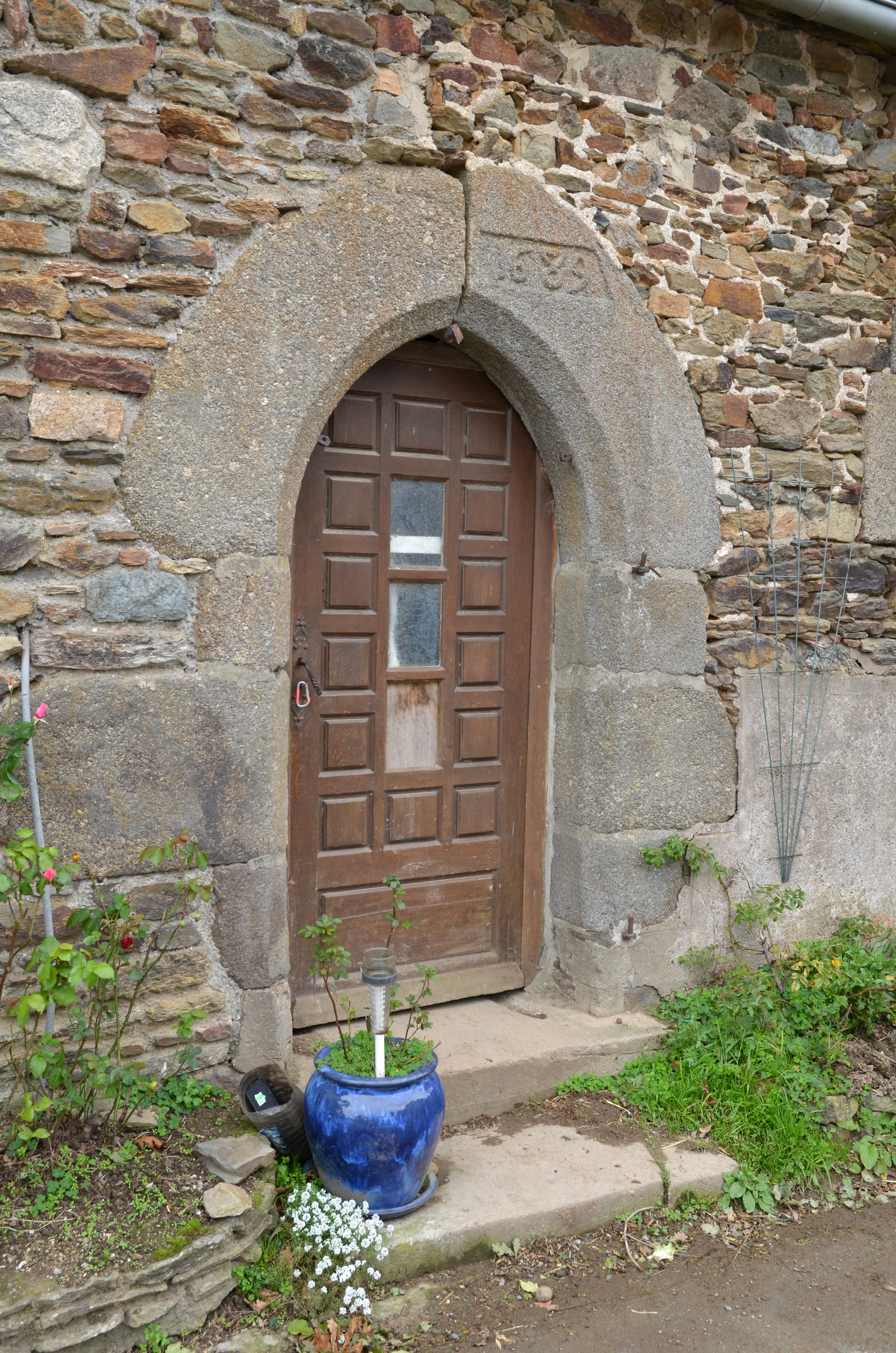 Langoat, Convenant Mazéo : ferme reconstruite en 1913. La porte de la dépendance porte le millésime 1689Immatriculation