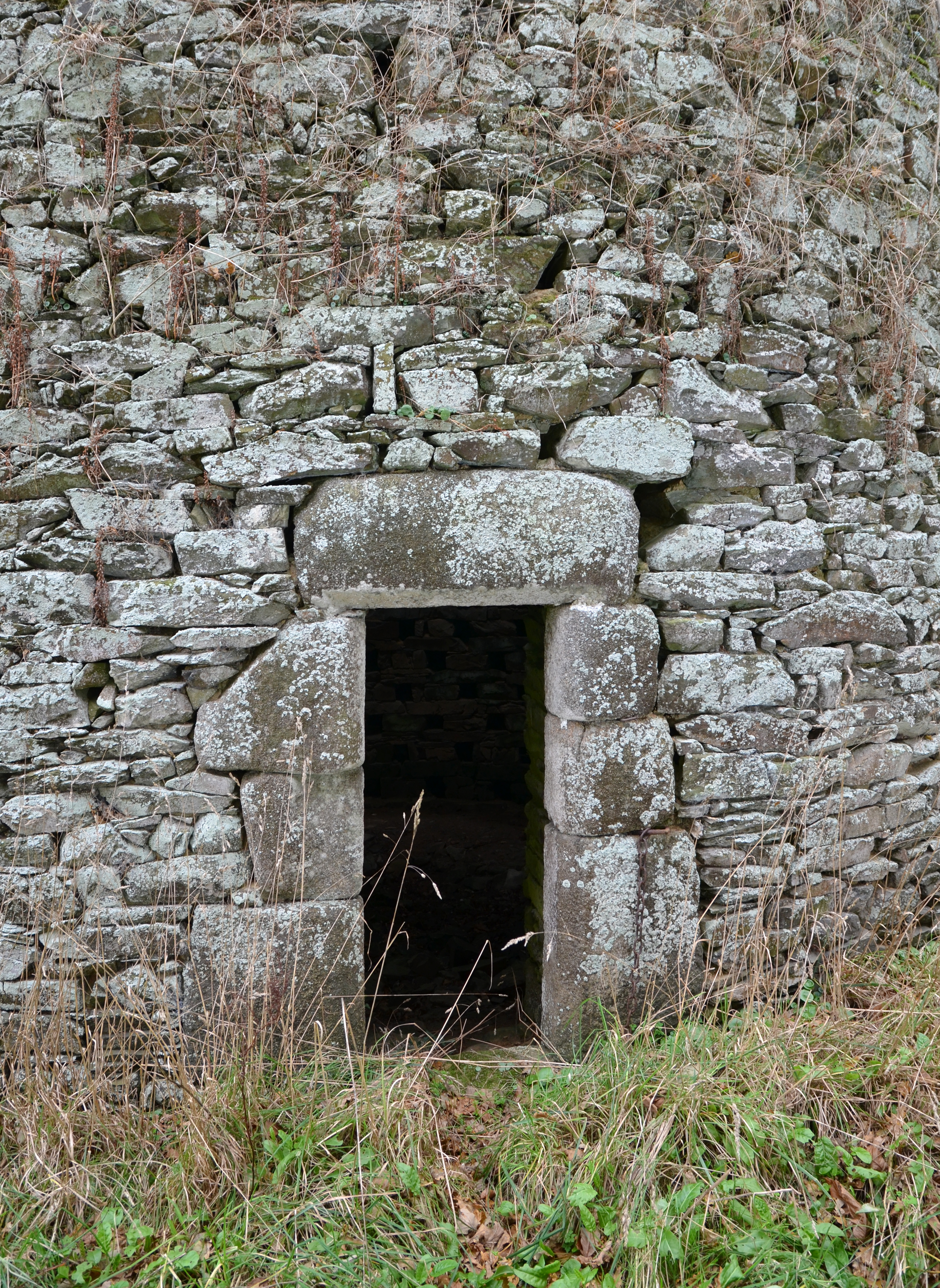 Langoat, Le Château : colombier de Lézeven, vue depuis le nord, porte à linteau droit à chanfreinImmatriculation