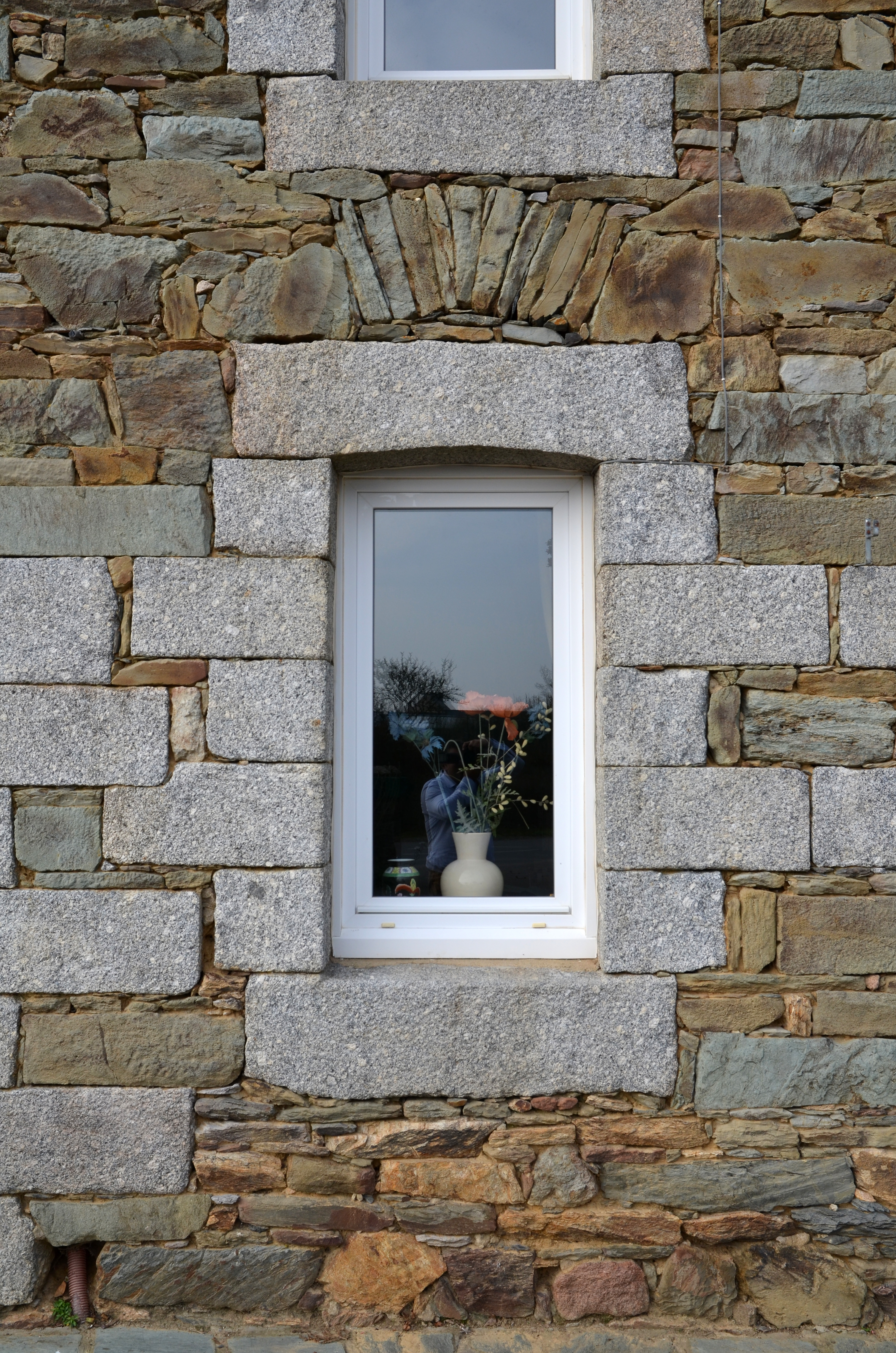 Langoat, Coat Croas (Koad Kroaz) : logis de ferme, élévation antérieure orientée vers le sud-est, fenêtre à linteau en arc segmentaire et linteau en pierre deboutImmatriculation