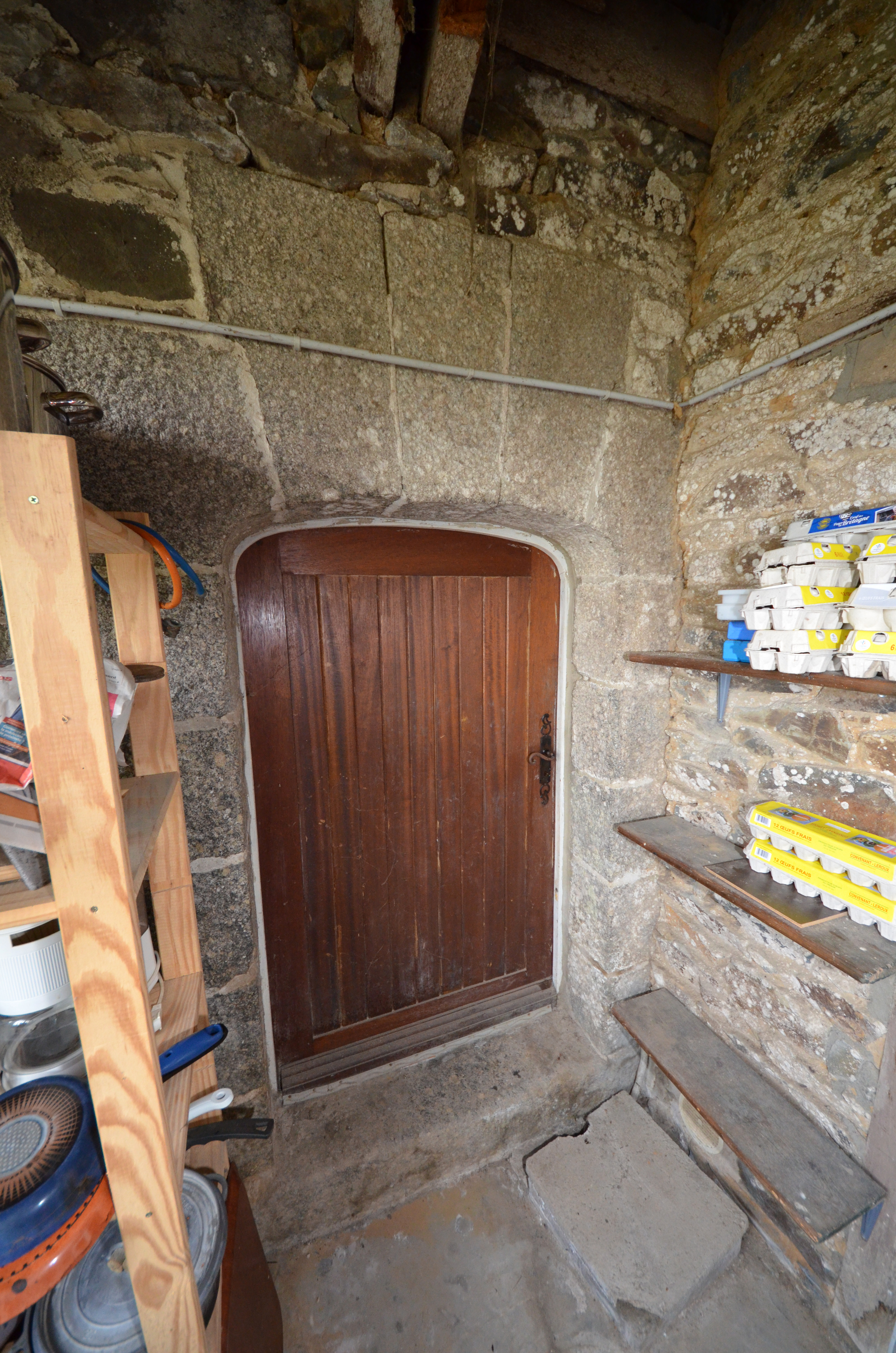 Langoat, Coat Croas (Koad Kroaz) : logis de ferme, élévation postérieure orientée vers le nord-ouest, porte arrière avec linteau en plate-bandeImmatriculation