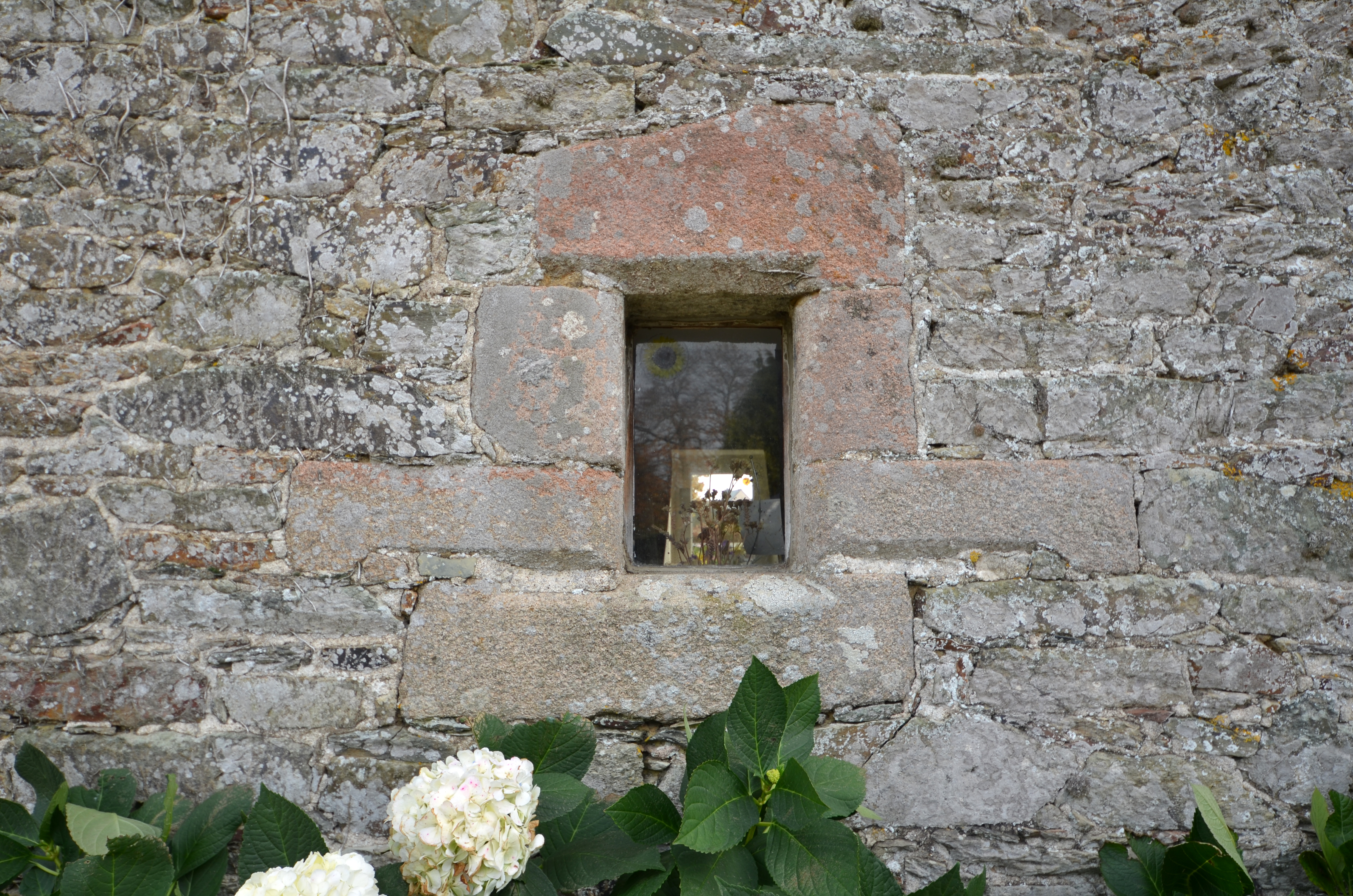 Langoat, Coat Croas (Koad Kroaz) : logis de ferme, élévation postérieure orientée vers le nord-ouest, petite baie remployant des éléments anciensImmatriculation