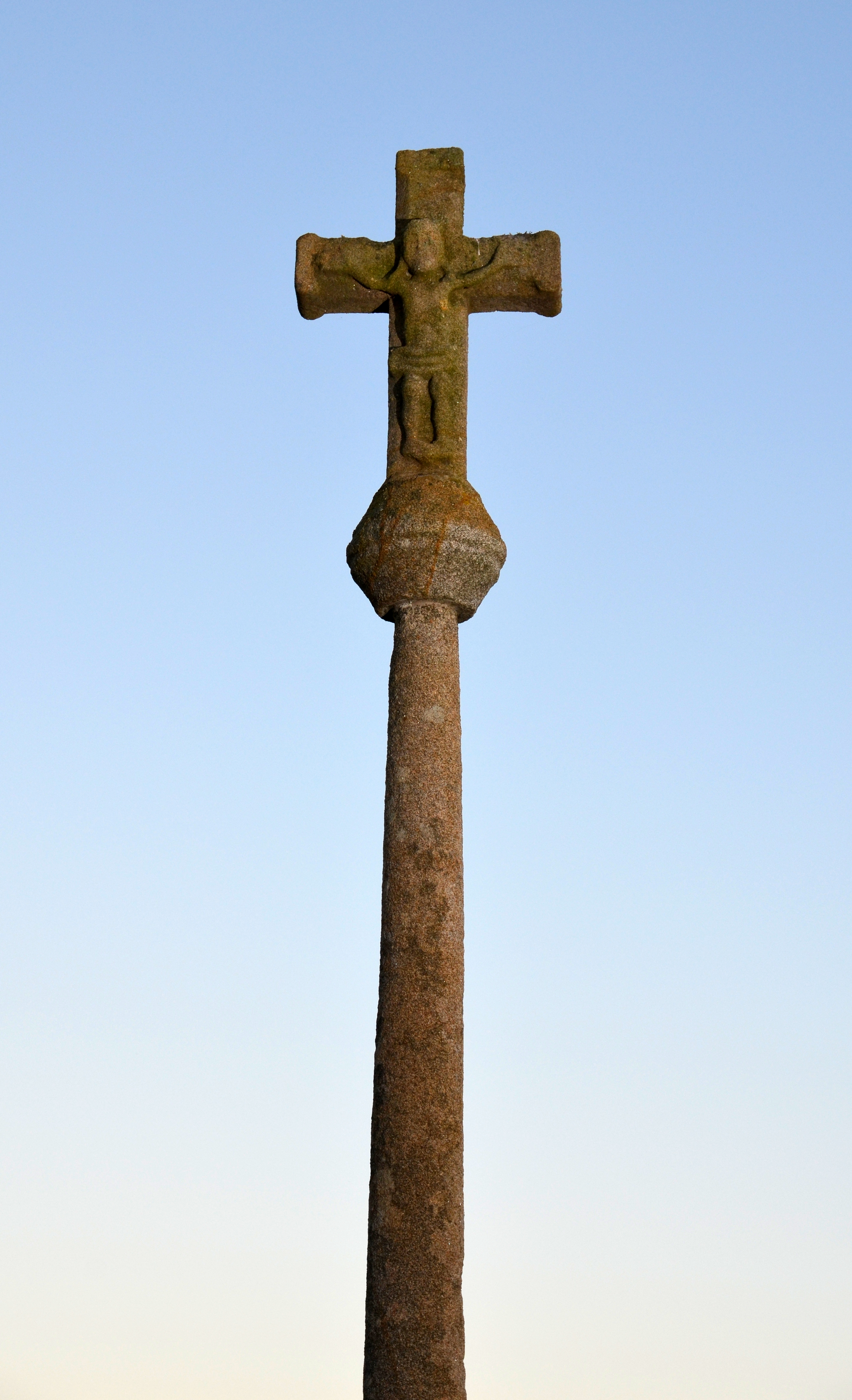 Mantallot, au nord de Bertu : croix de chemin nommée Croas Liben sur le cadastre de 1835. Face ouest : Christ en croixImmatriculation