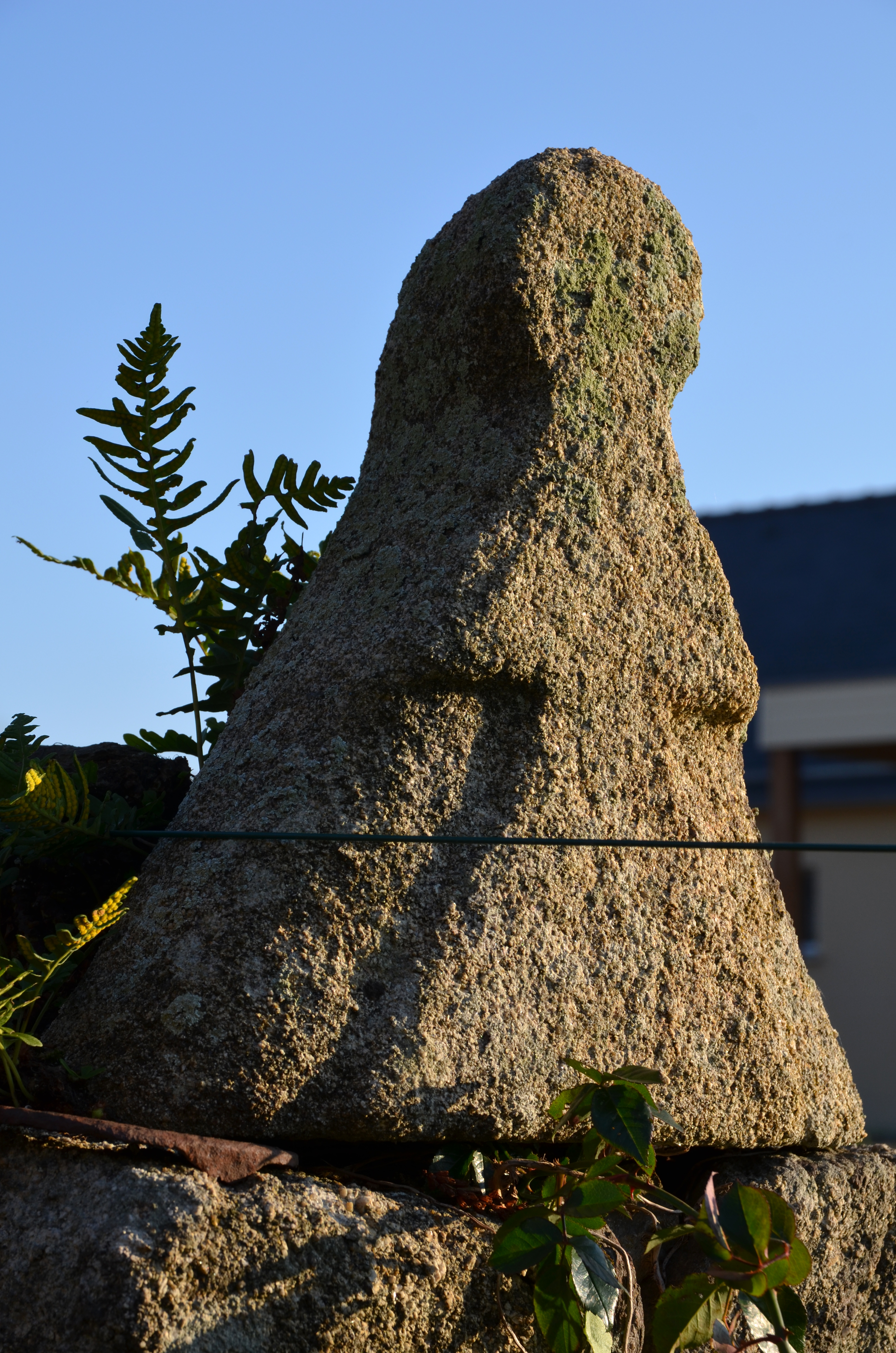Mantallot, au nord du Bourg : manoir de Kerilis, élément sculpté en granite gris provenant d'une lucarne à fronton triangulaireImmatriculation