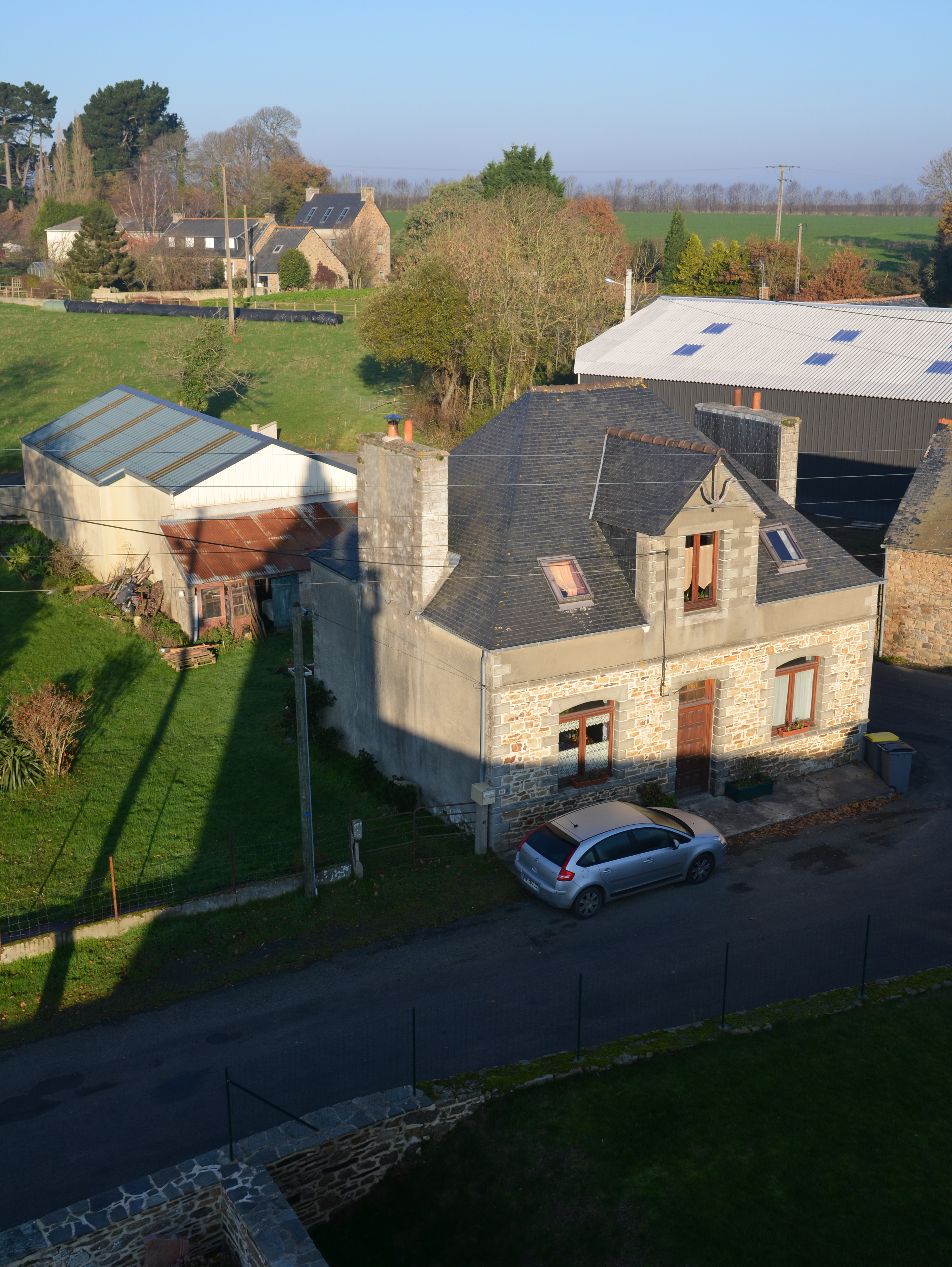Mantallot : vue générale du bourg vers le nord-nord-est depuis le clocher de l'église paroissiale. Au premier plan : ancien magasin de commerceImmatriculation