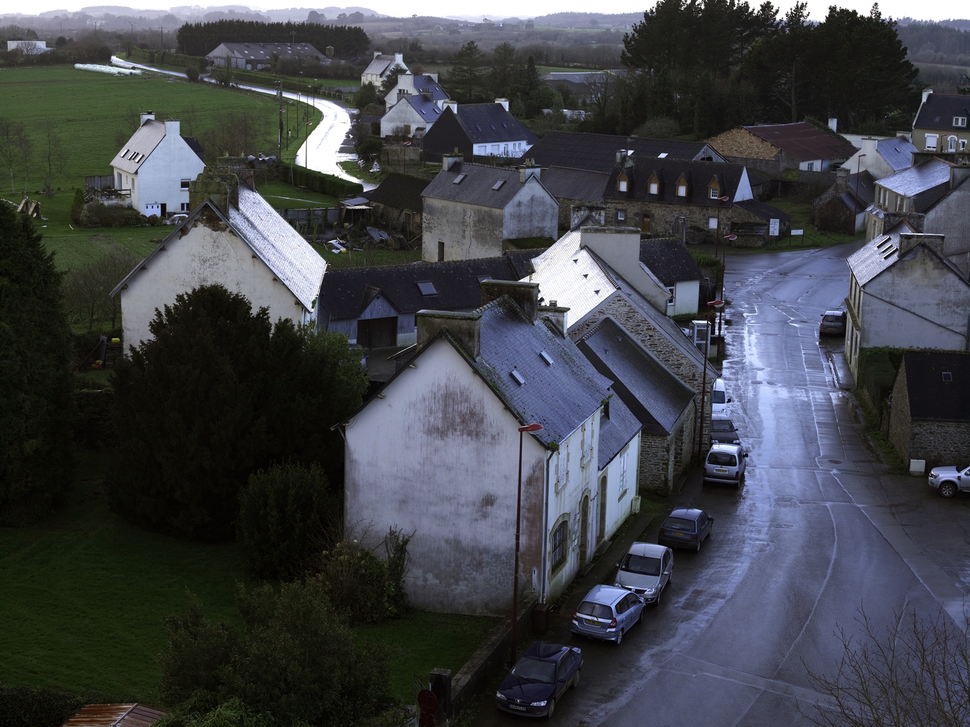 Sortie ouest du bourg vers Hôpital-Camfrout, vue prise du clocherImmatriculation