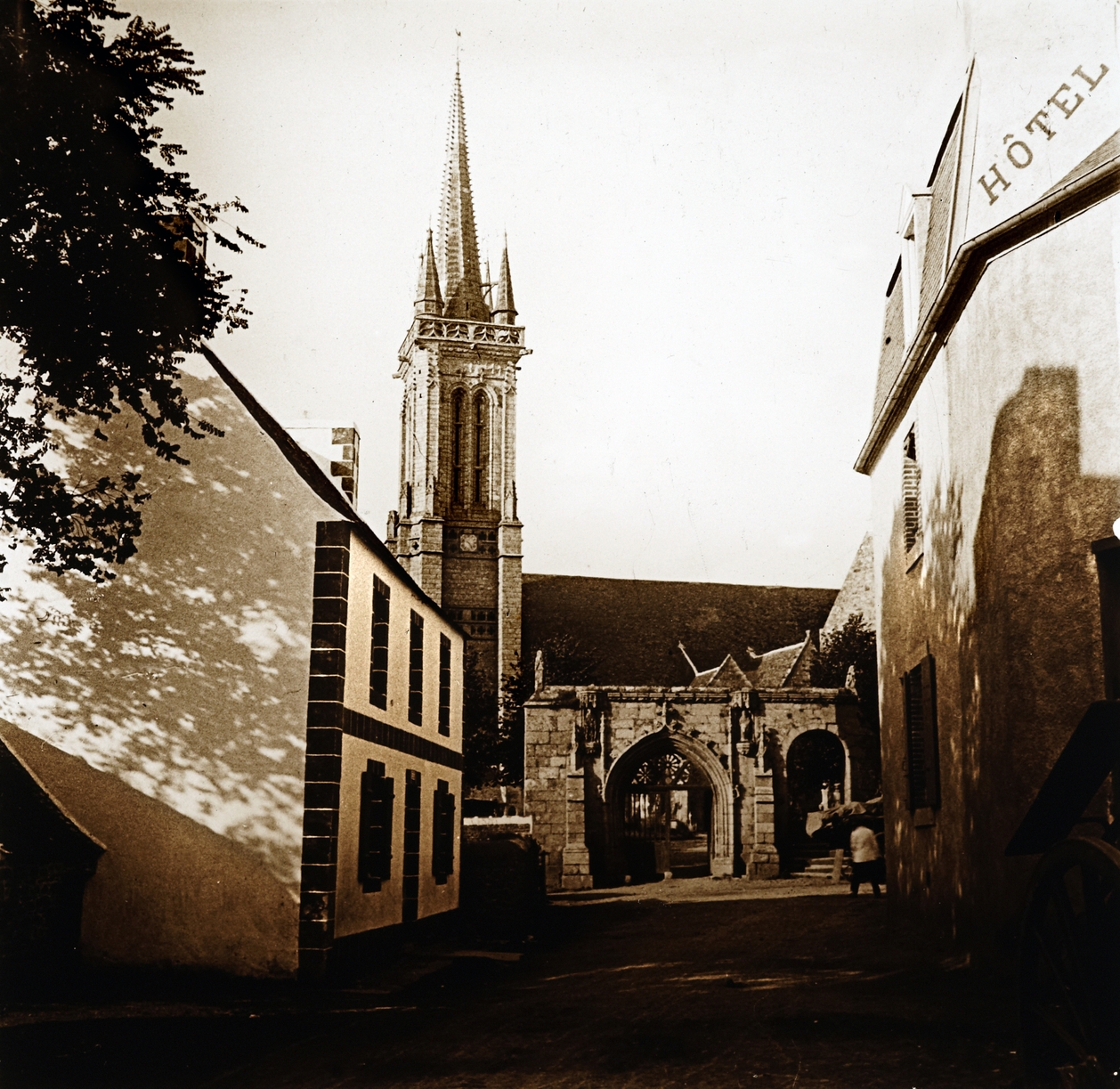 Vue de l'église avec sa flèche de plomb : plaque de verre 1916 à 1936 (collection privée)Immatriculation