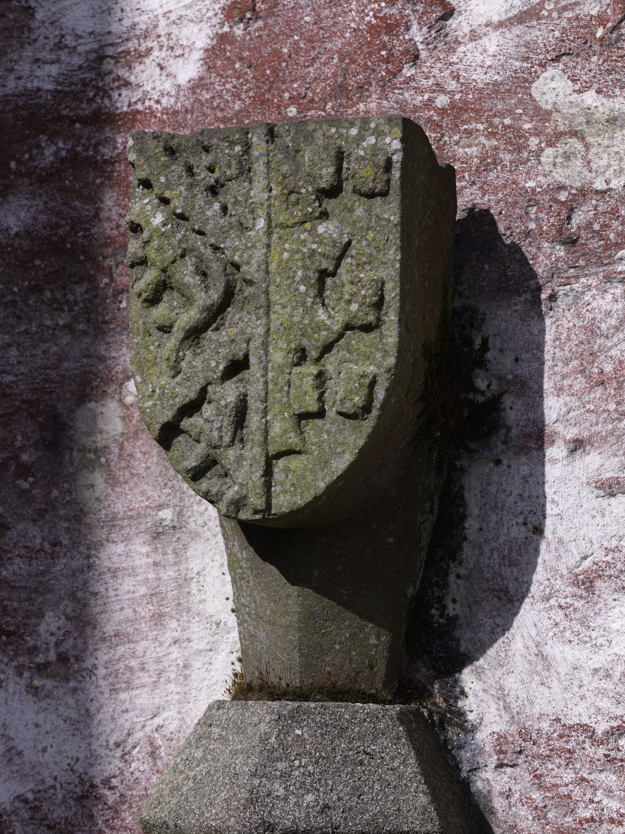 Porte 16e siècle remployée dans la sacristie nord, détail du blasonImmatriculation