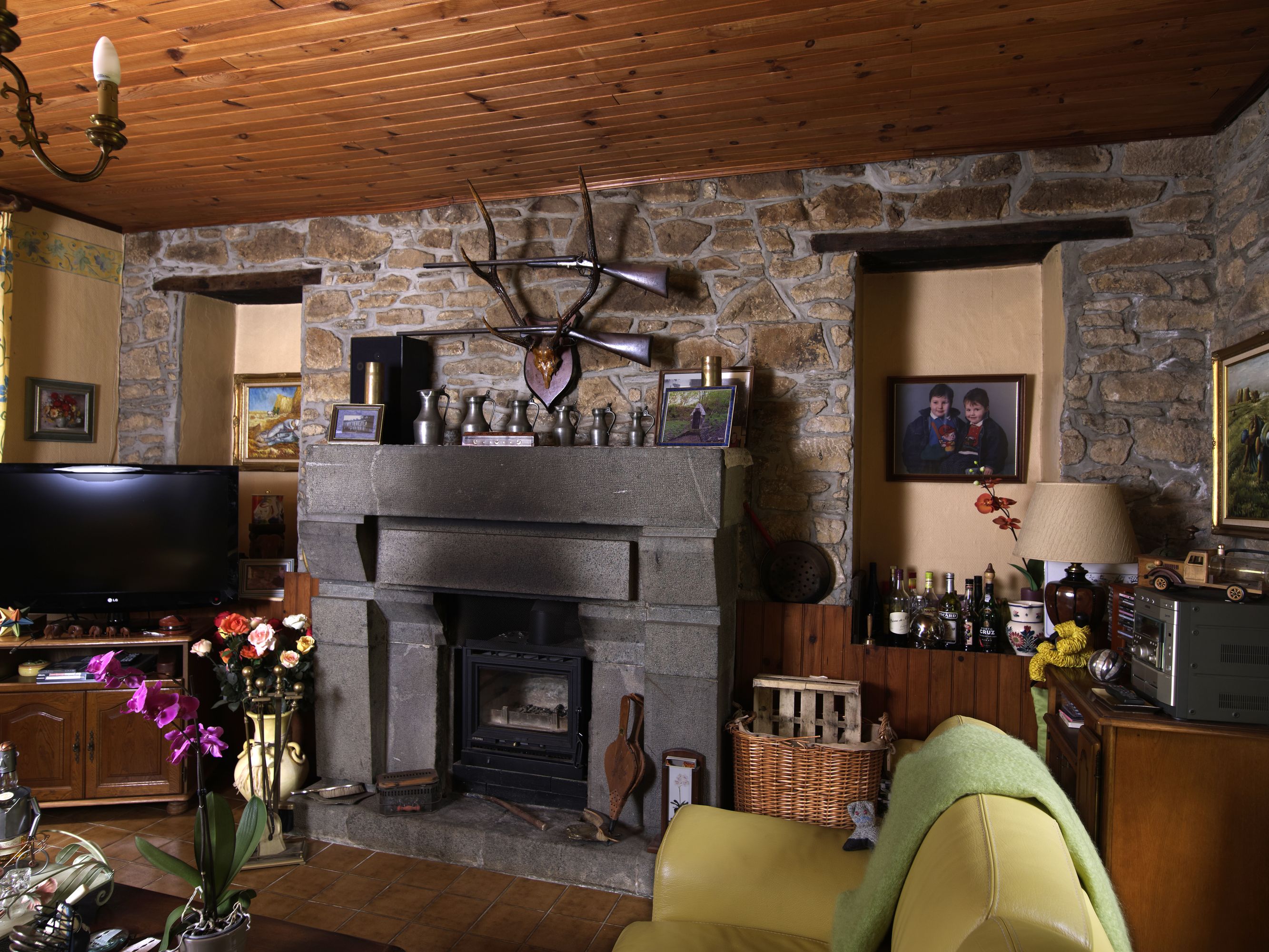 Intérieur de la maison. Rez-de-chaussée. Détail d'une cheminée en kersantonImmatriculation