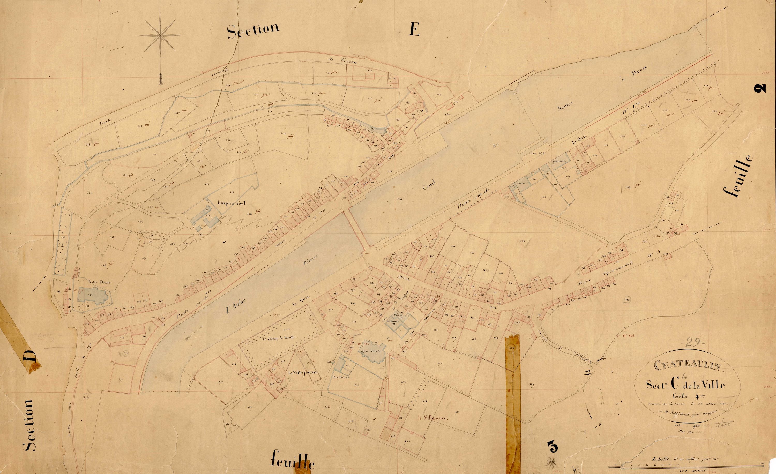 Cadastre de la commune de Châteaulin, 1847 : tableau d'assemblage et feuilles. Serie 3P096.