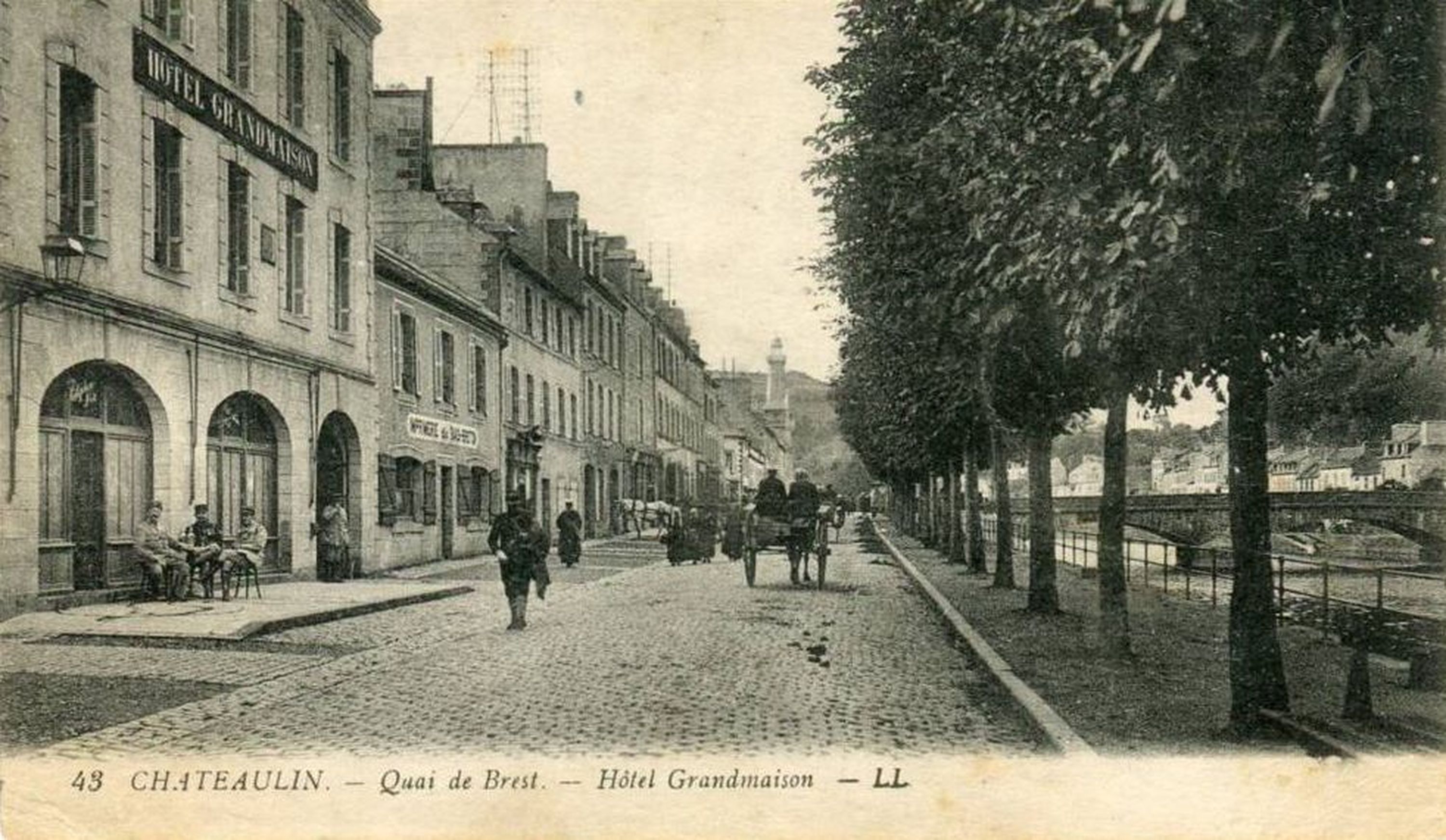 Carte postale. Quai de Brest, Hôtel Grand maison.Immatriculation