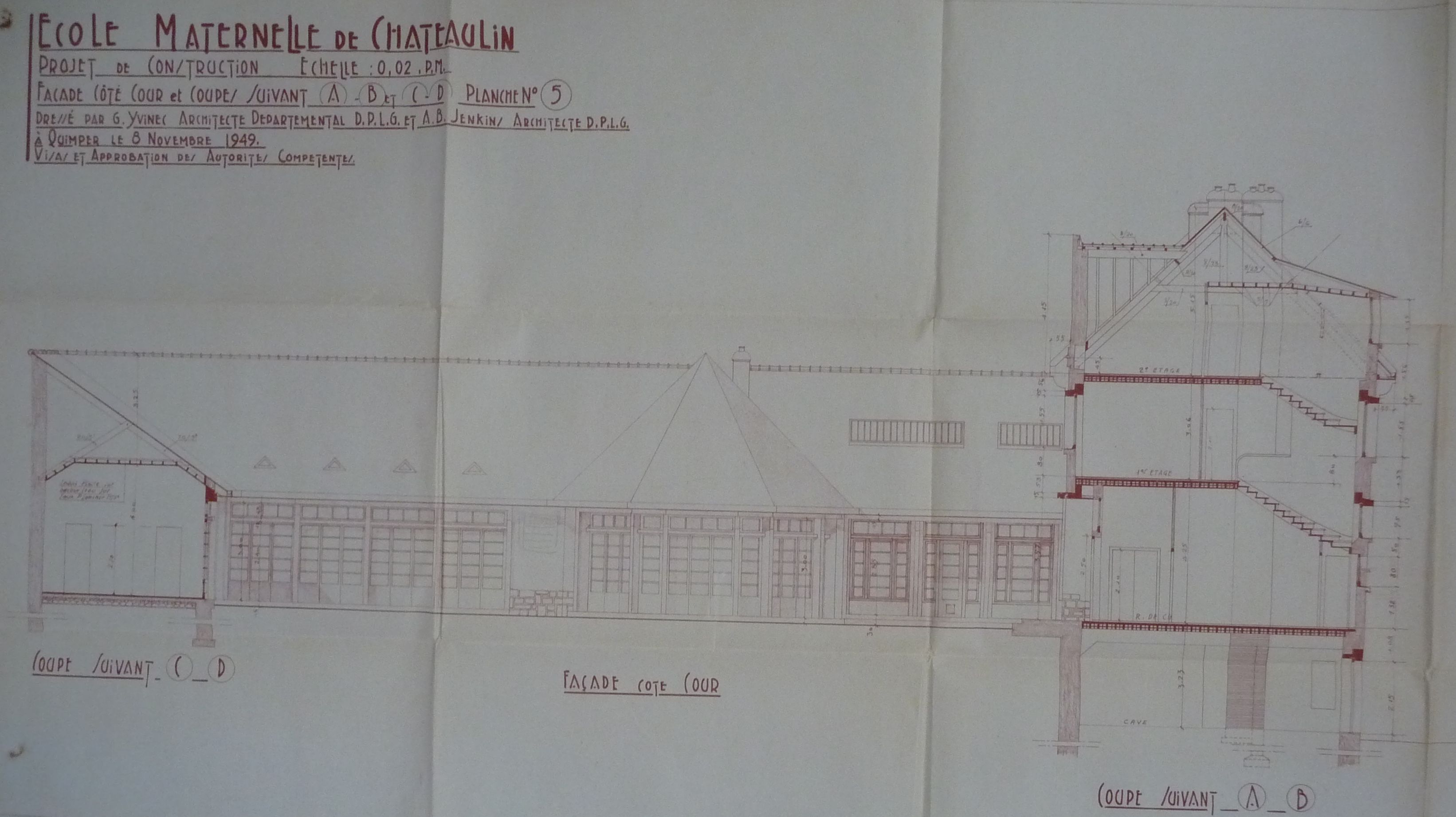 Plan, projet de reconstruction, Yvinec et Jenkins, 1949Immatriculation