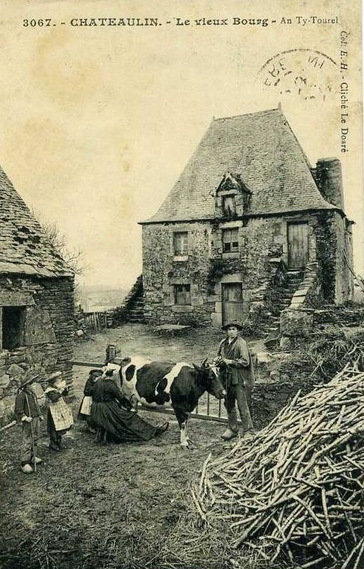 Carte postale. Châteaulin, Le Vieux-Bourg, An ty Tourel. Coll. E.H. Cliché Le Doaré. (Coll. particulière)Immatriculation