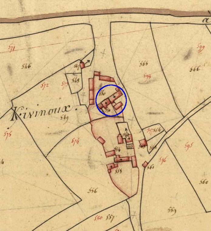 Emplacement de la ferme de Kervinou en 1824. Extrait du cadastre ancien de 1824 (A.D. 29, série 3P 2/19. Section E2)Immatriculation