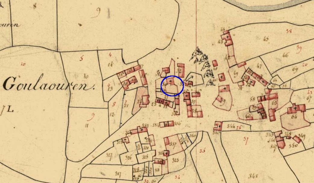 Le hameau de Goulaouren en 1824. Extrait du cadastre ancien (A.D. 29, série 3P 2/19. Section D1)Immatriculation