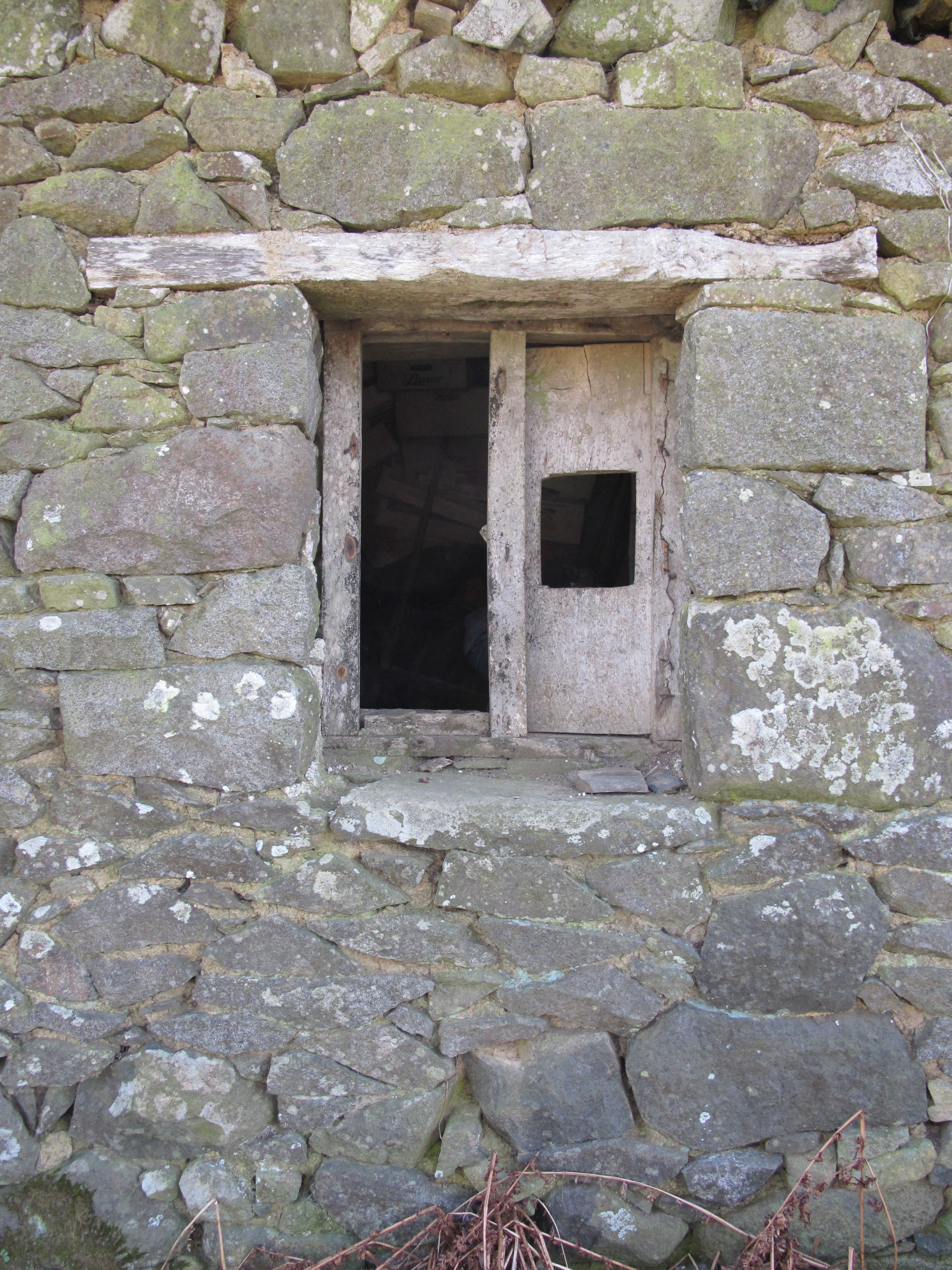 Boudourec. Détail d'une fenêtre à linteau de bois avec huisserie ancienne en placeImmatriculation