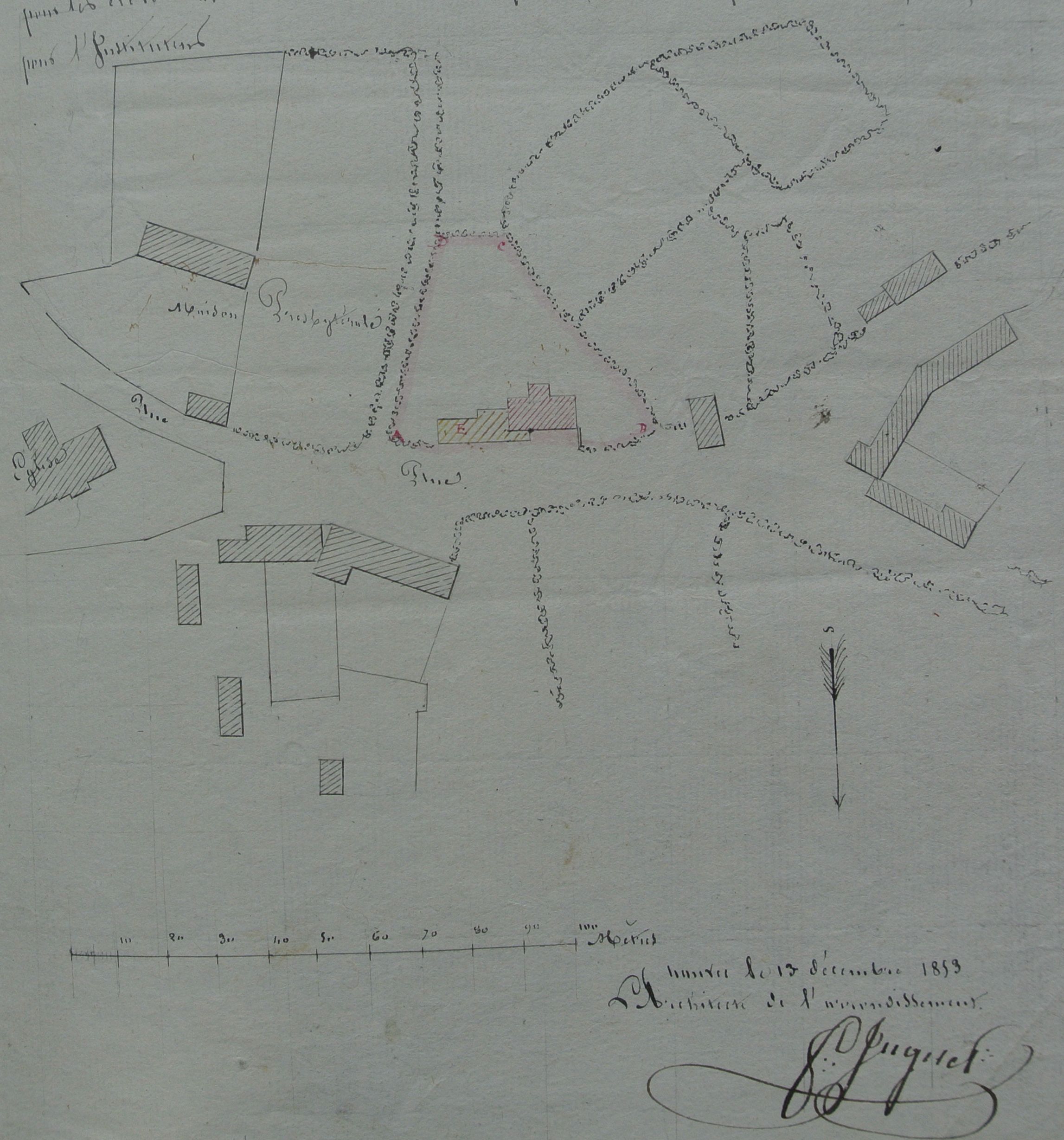 Plan de situation de l'ancienne école des garçons, place Herry, 1853. F. Jugelet, architecte (Archives départementales du Finistère. Série 2 O 581 Mairie-Ecoles, 1851-1923)Immatriculation