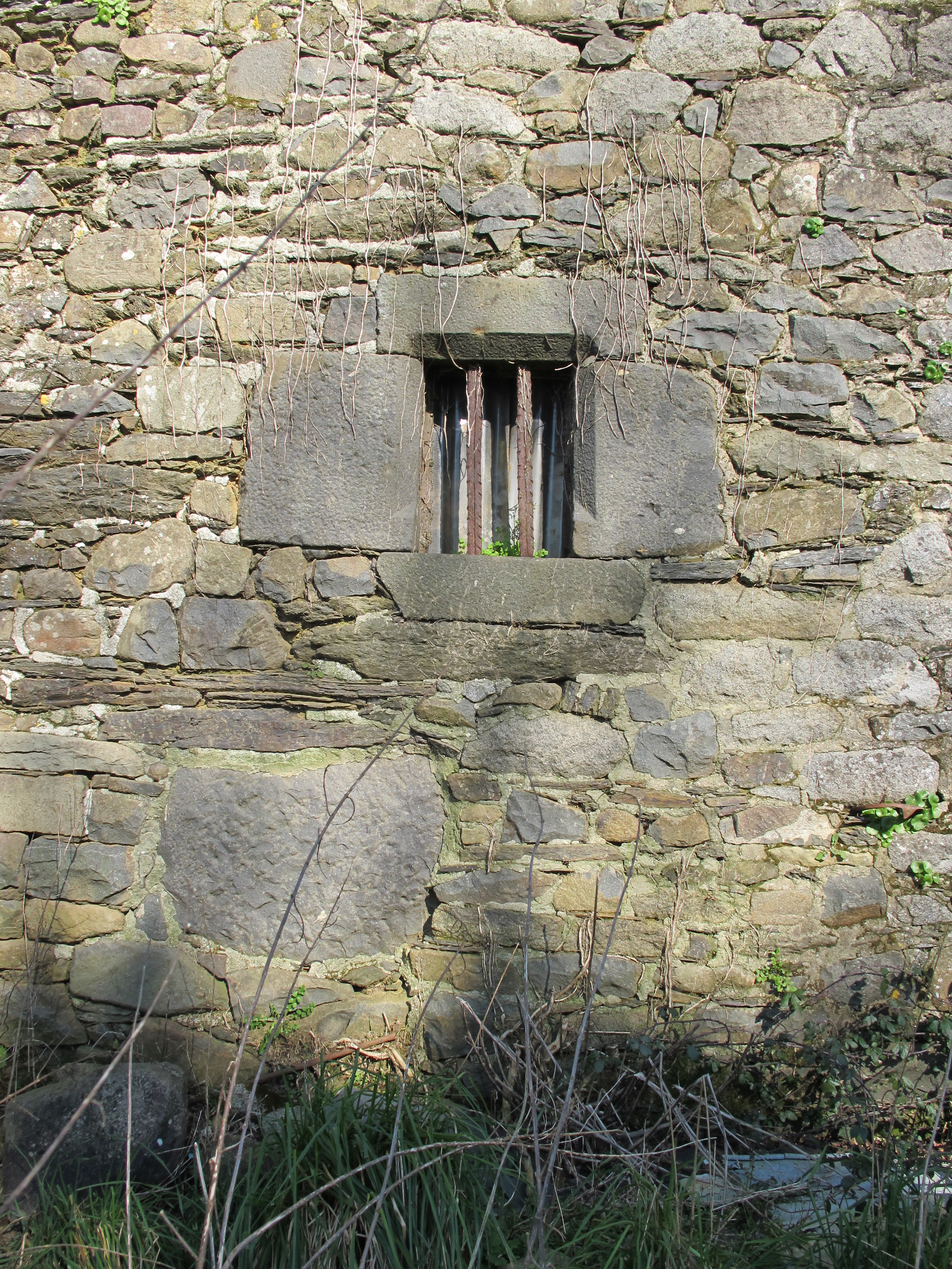 Façade sud. Détail d'une fenêtre du rez-de-chaussée et du saloirImmatriculation