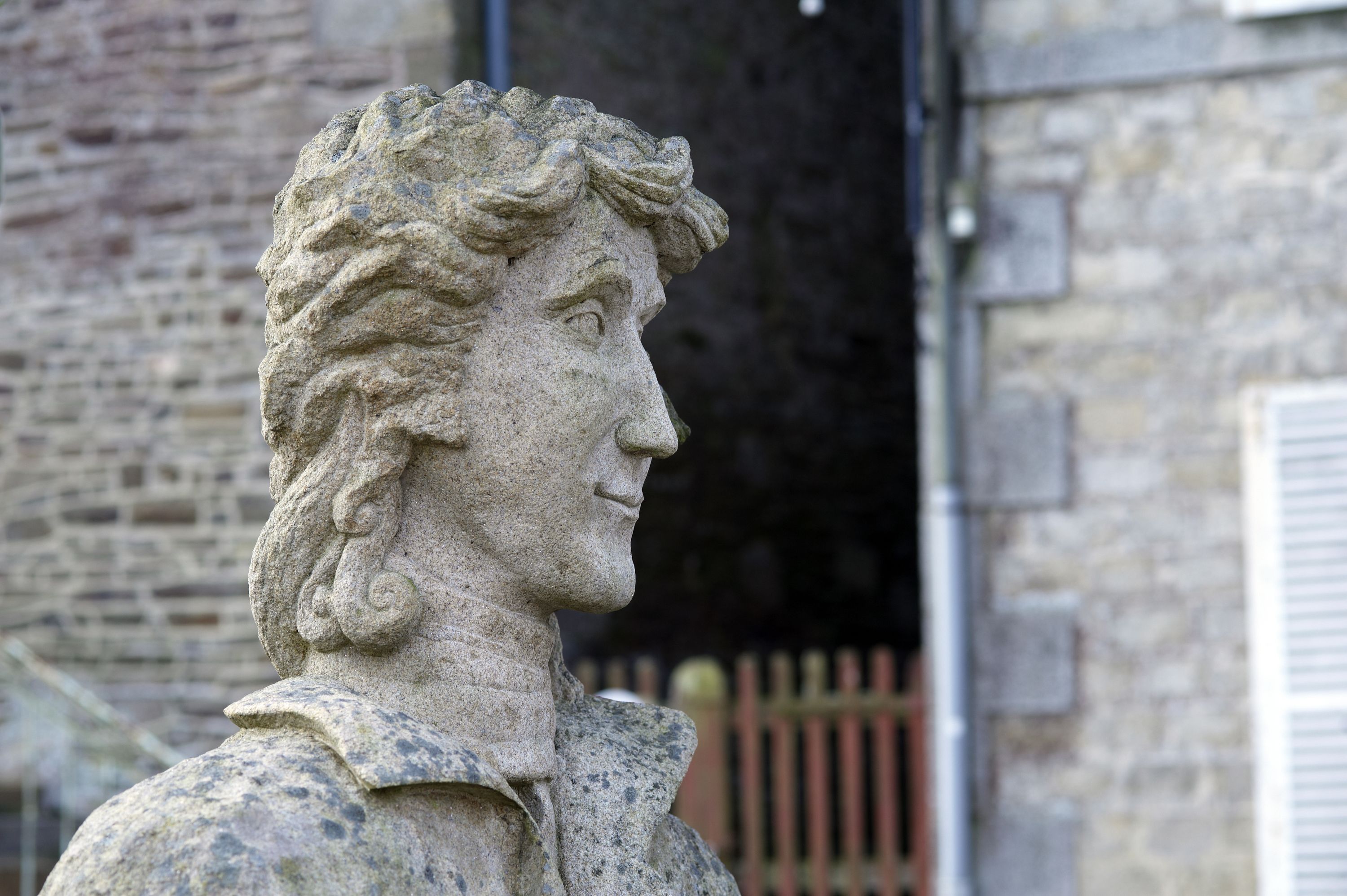 Place centrale : statue d'Armand de la RouërieImmatriculation