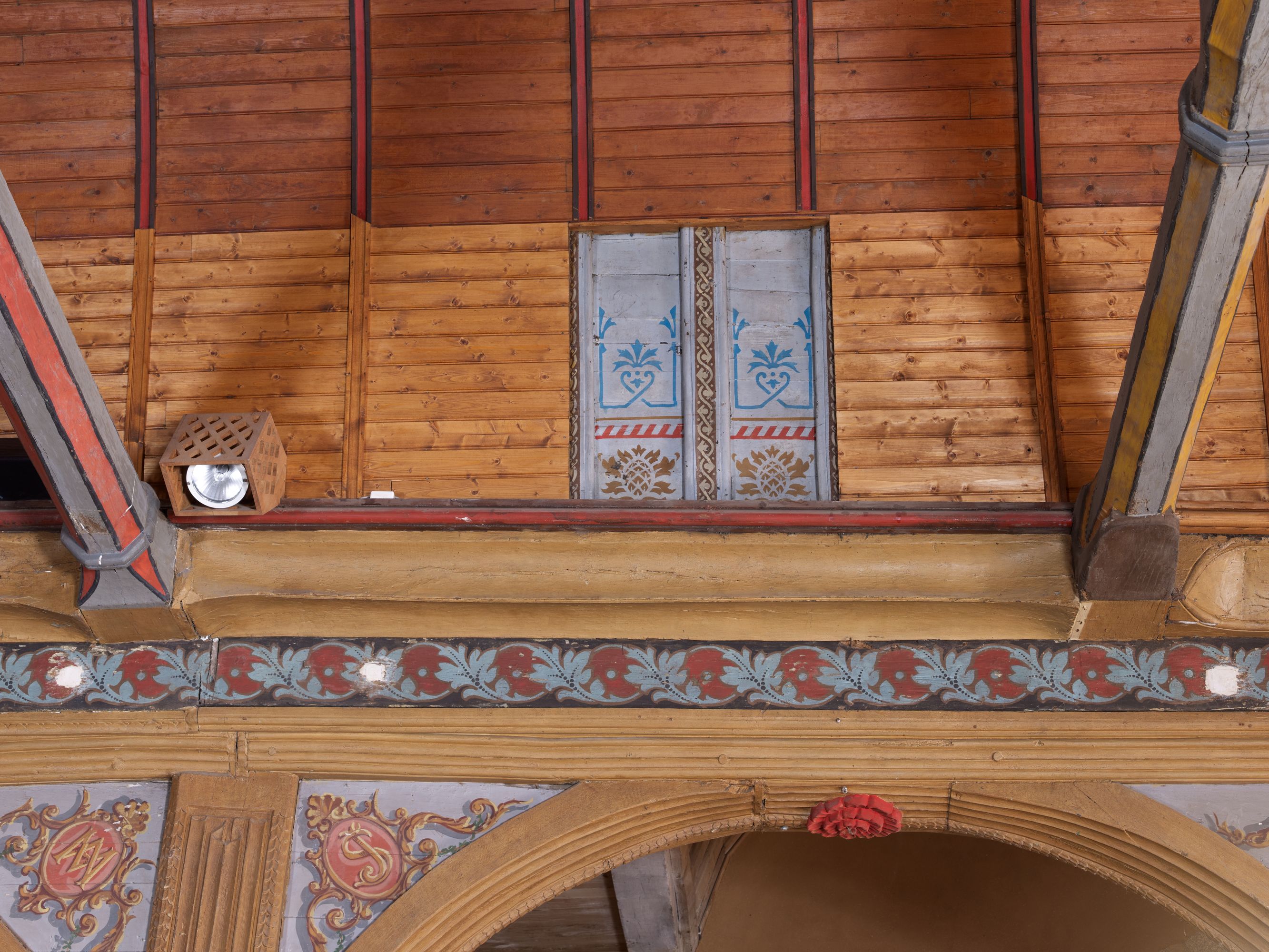 Vue de l'ancien et du nouveau lambris de revêtement de la voute de la nefImmatriculation