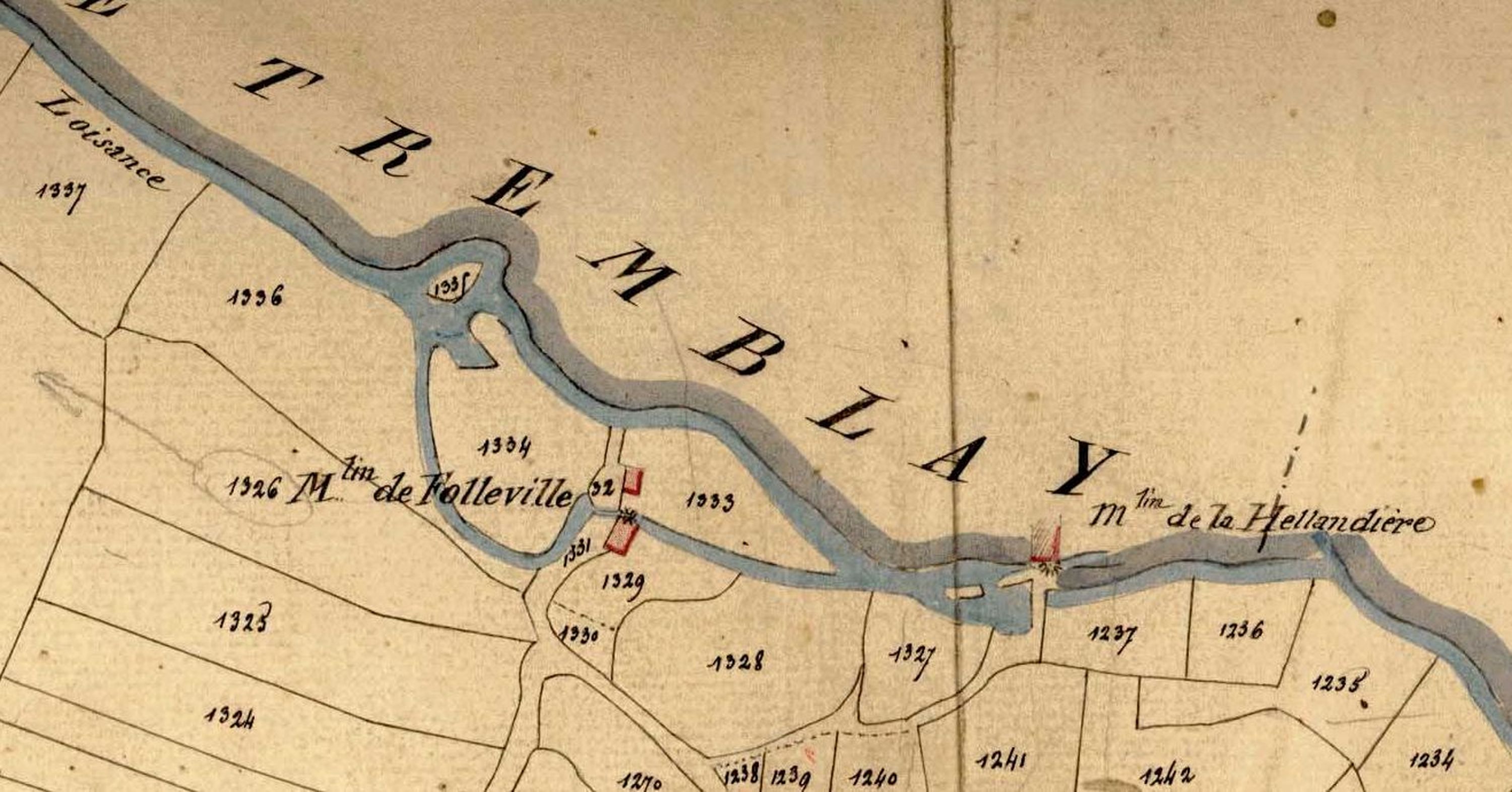 Moulin de Folleville sur le cadastre napoléonienImmatriculation