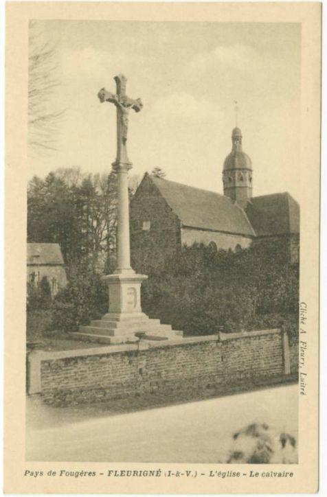 Fleurigné (I.-et-V.) L'église et le calvaire (carte postale)Immatriculation