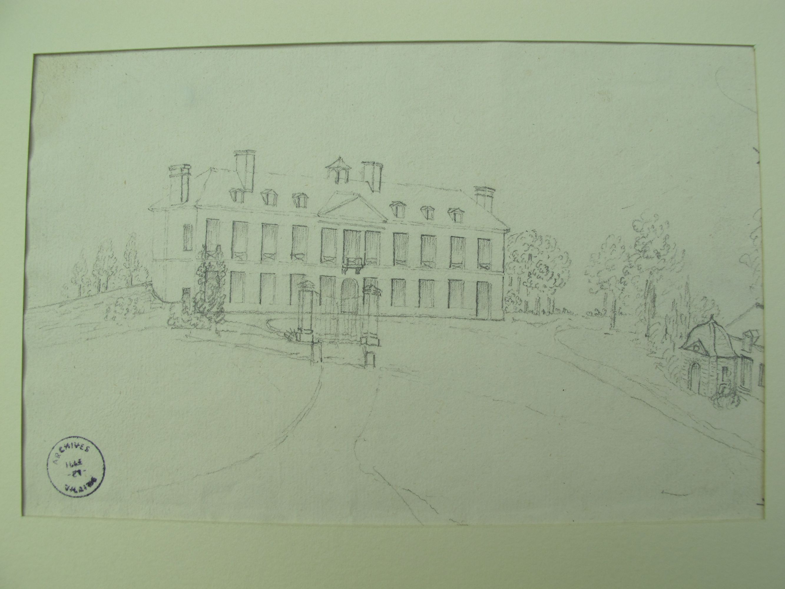 Croquis du château de Saint-Ouen-la-Rouërie avant la transformation de la façade. Louis Richelot (19e siècle)Immatriculation