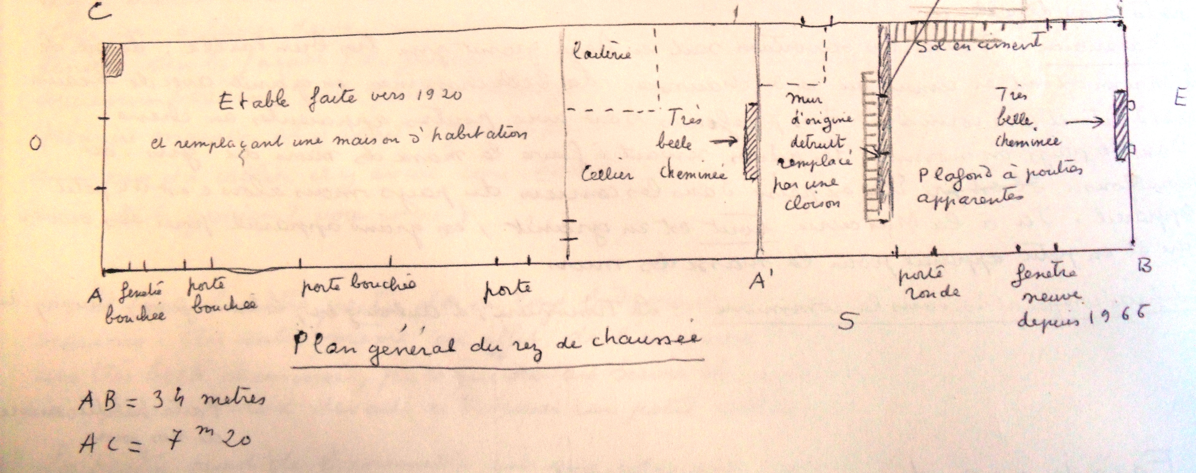 Plan du rez-de-chaussée de la ferme située le plus à l'ouest du lieu-dit de la Métairie et datant du recensement effectué en 1968Immatriculation