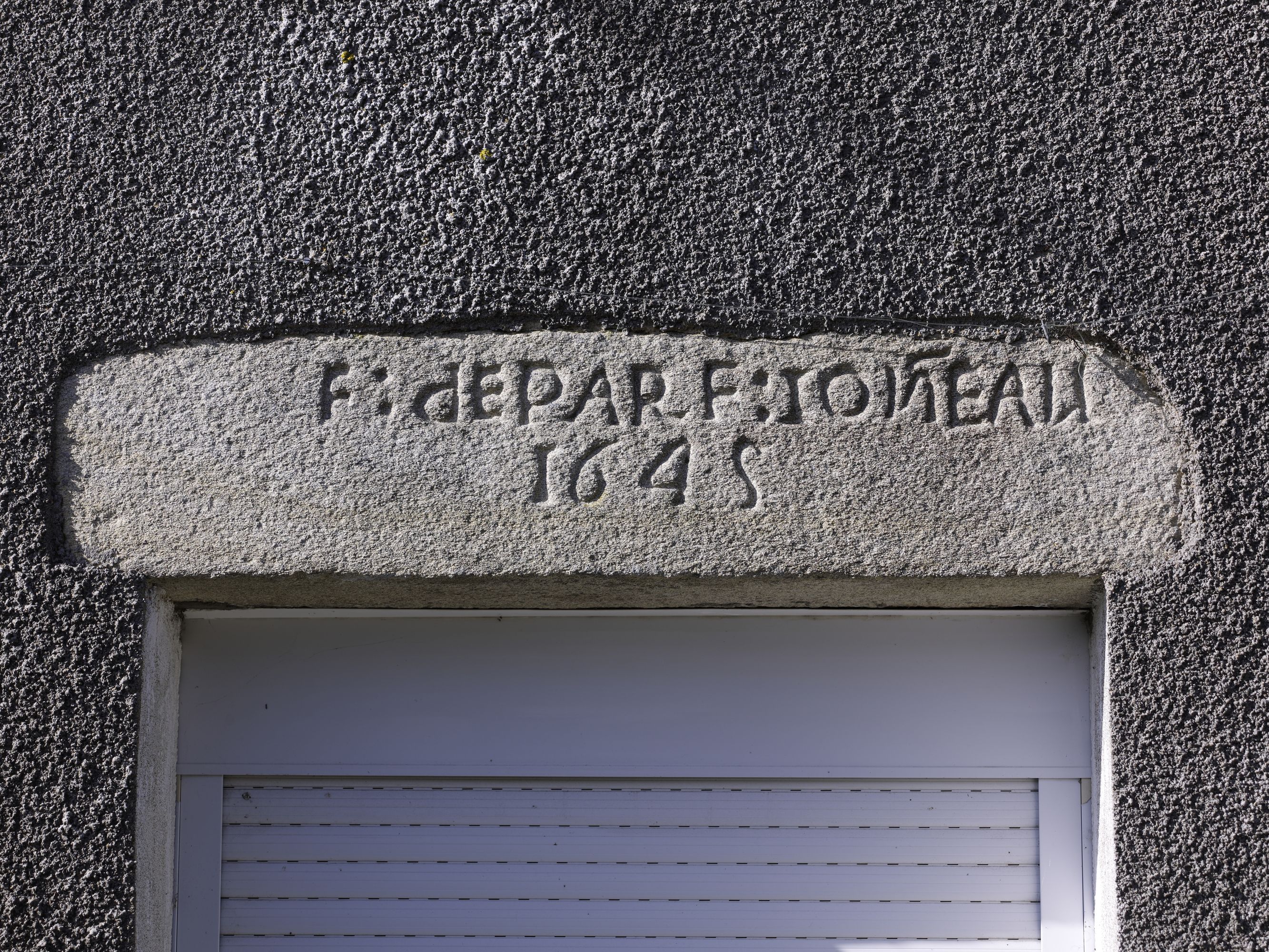 Logis nord, élévation antérieure, détail du linteau daté 1645Immatriculation