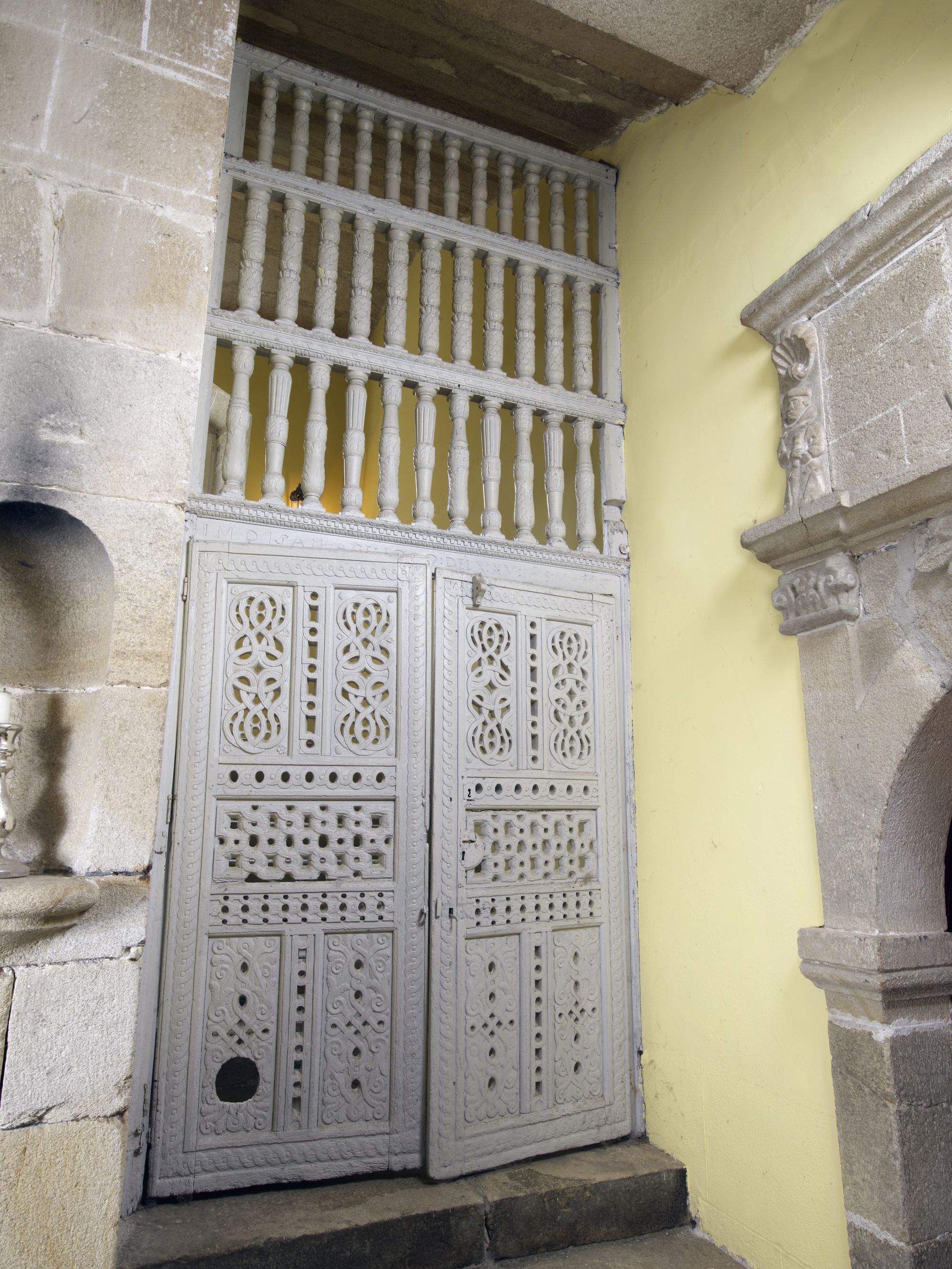 Hall d'entrée, porte à claire-voie fermant l'accès à l'escalierImmatriculation