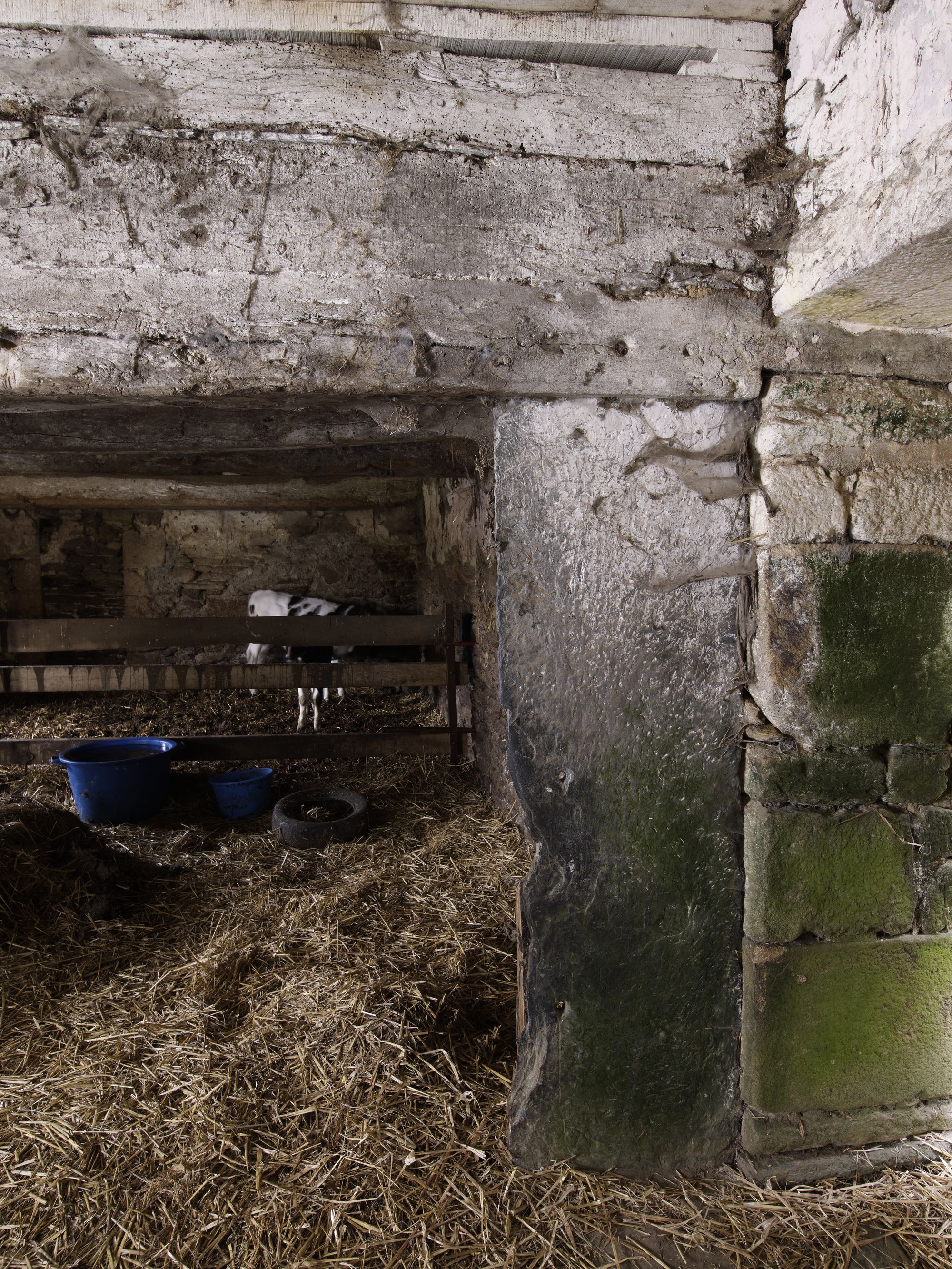 Intérieur du logis-étable, détail de la cloison de schisteImmatriculation
