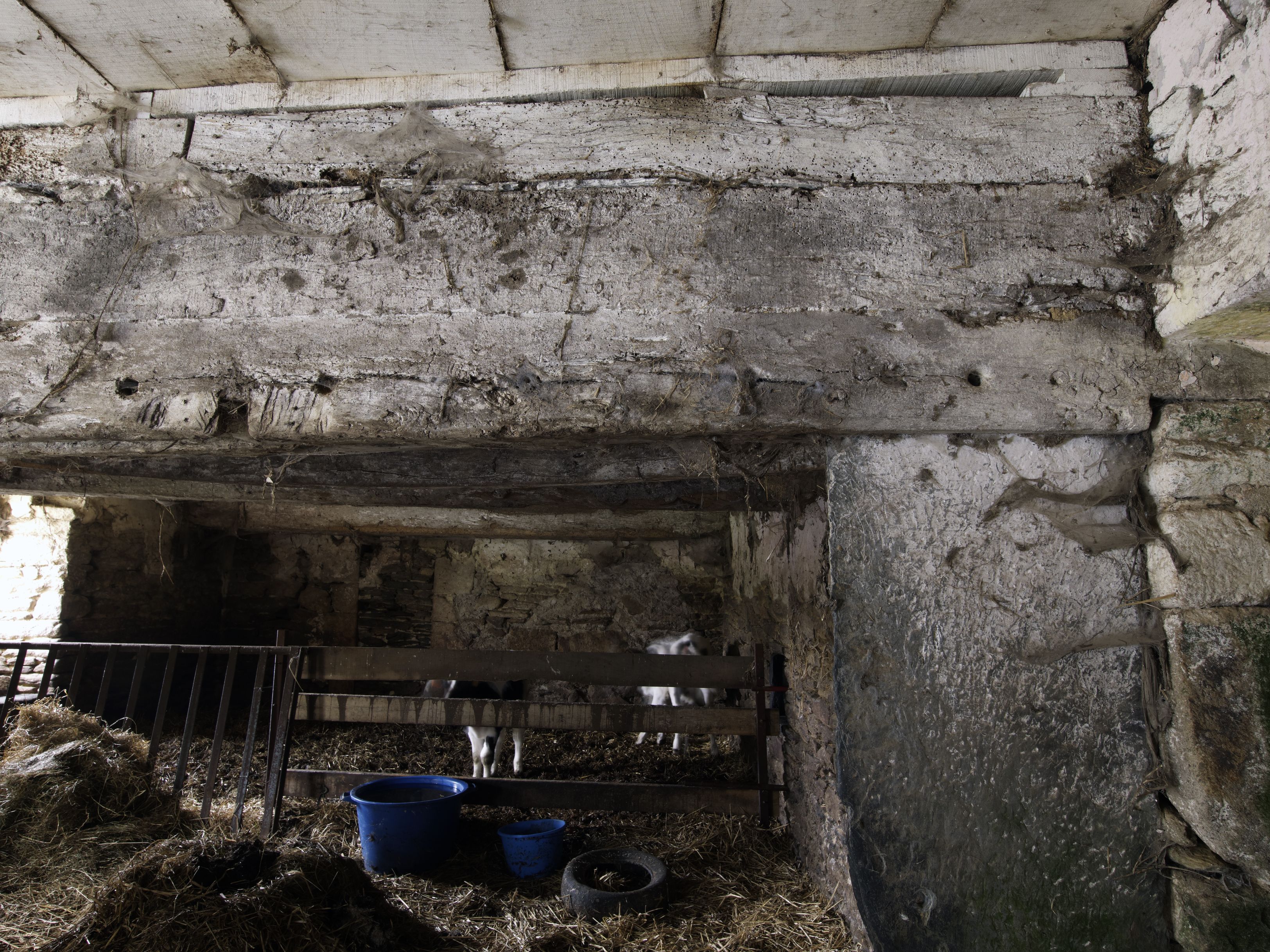 Logis-étable, vestiges de cloison intérieure en schisteImmatriculation