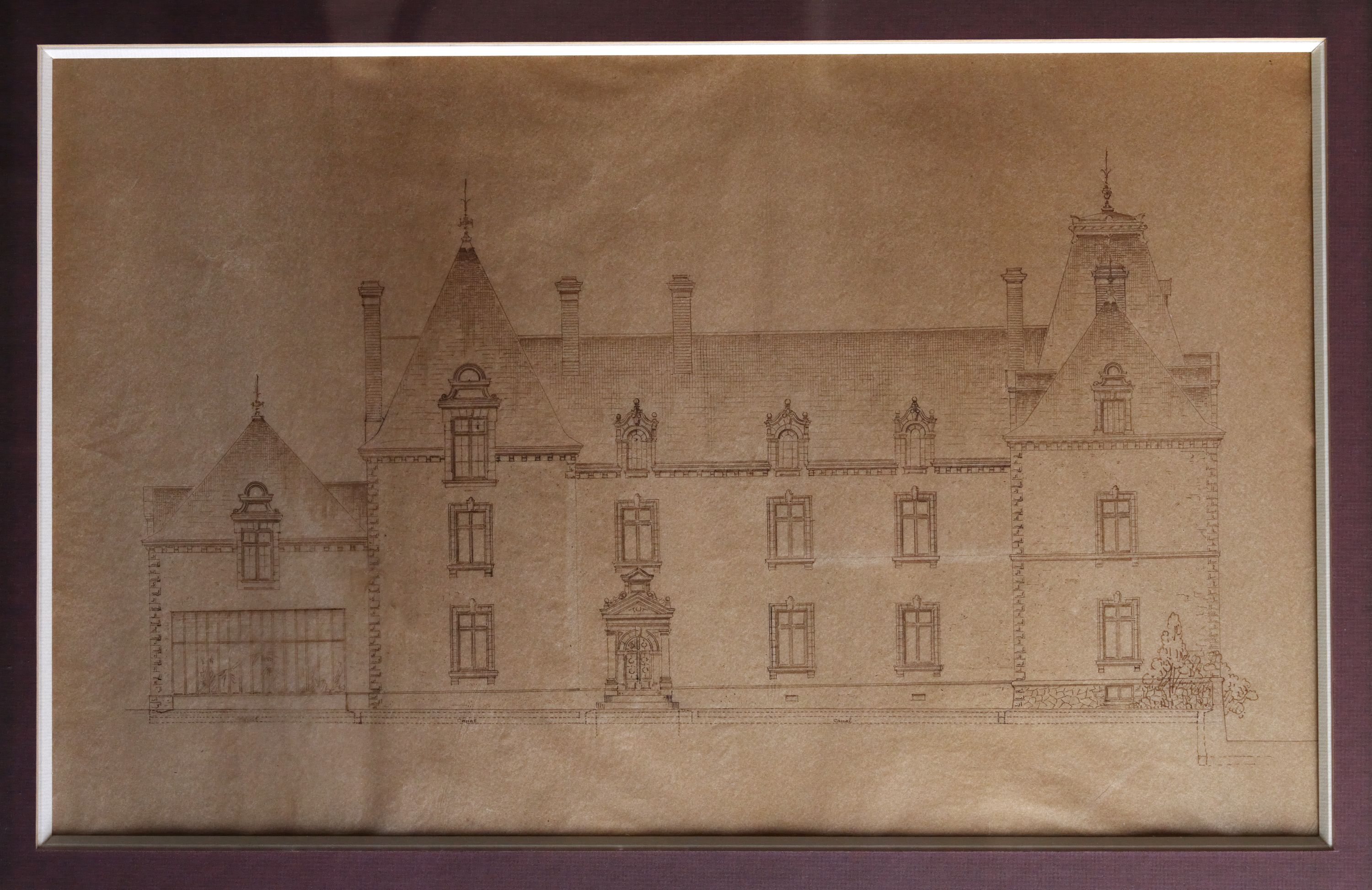 Elévation sud du château, plan du projet d'agrandissement de l'aile réalisé dans la 2e moitié du 19e siècle. (Collection particulière)Immatriculation