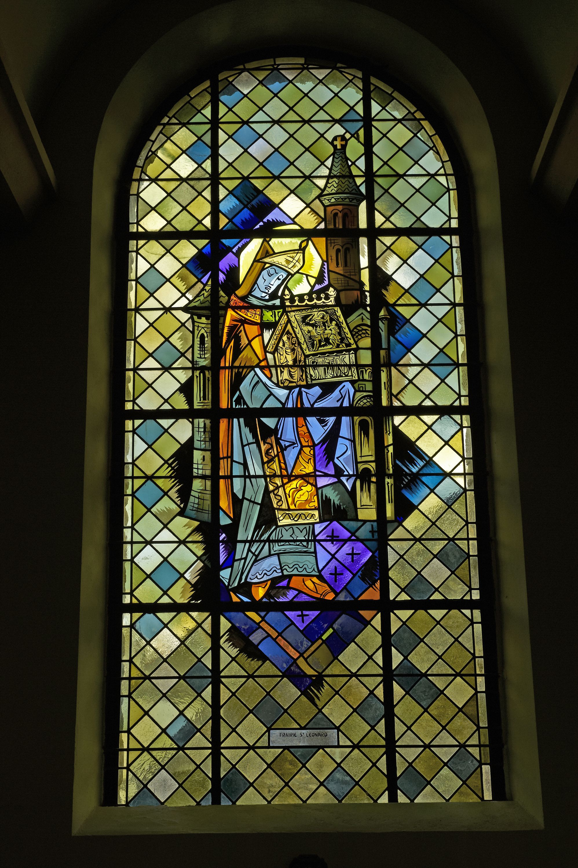 Verrière de la baie 7 : Saint Martin (?) porte une châsse d'orfèvrerie (état en 2013)Immatriculation