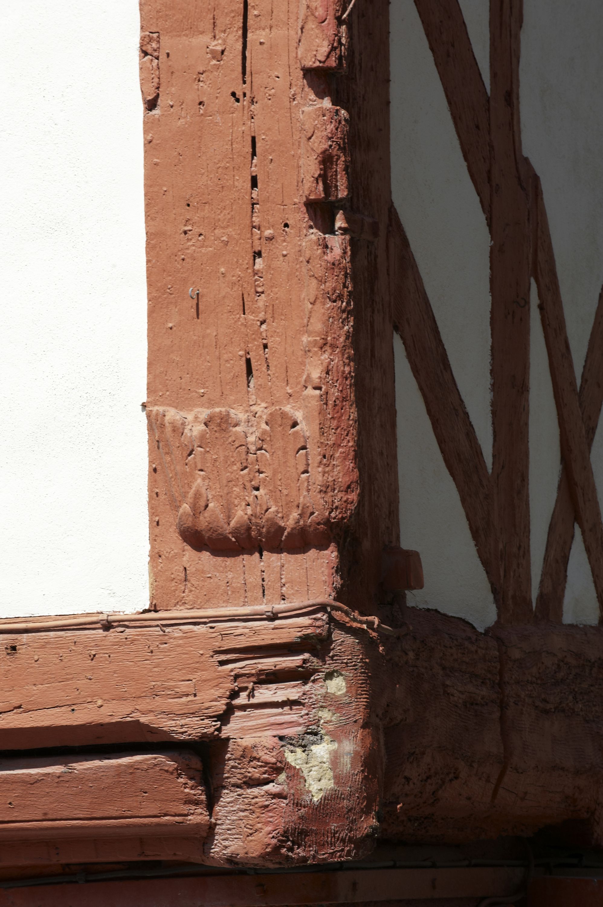 Premier étage, angle sud-ouest, pan de bois décorImmatriculation