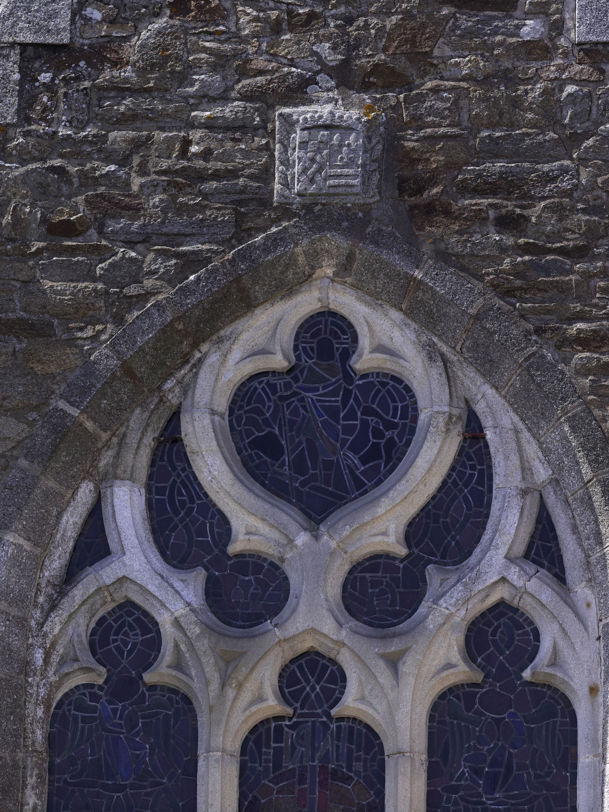 Chevet, pan axial, blason remployé aux armes des du Matz en alliance avec la MarzelièreImmatriculation